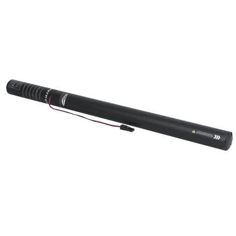 The Showtec electric cannon is a single use cannon, prefilled with confetti or streamers. To fire an electric cannon, the Showtec FX Shot (60908) is required. The bottom part of the cannon contains a pressurized nitrogen cartridge for a powerful effect.