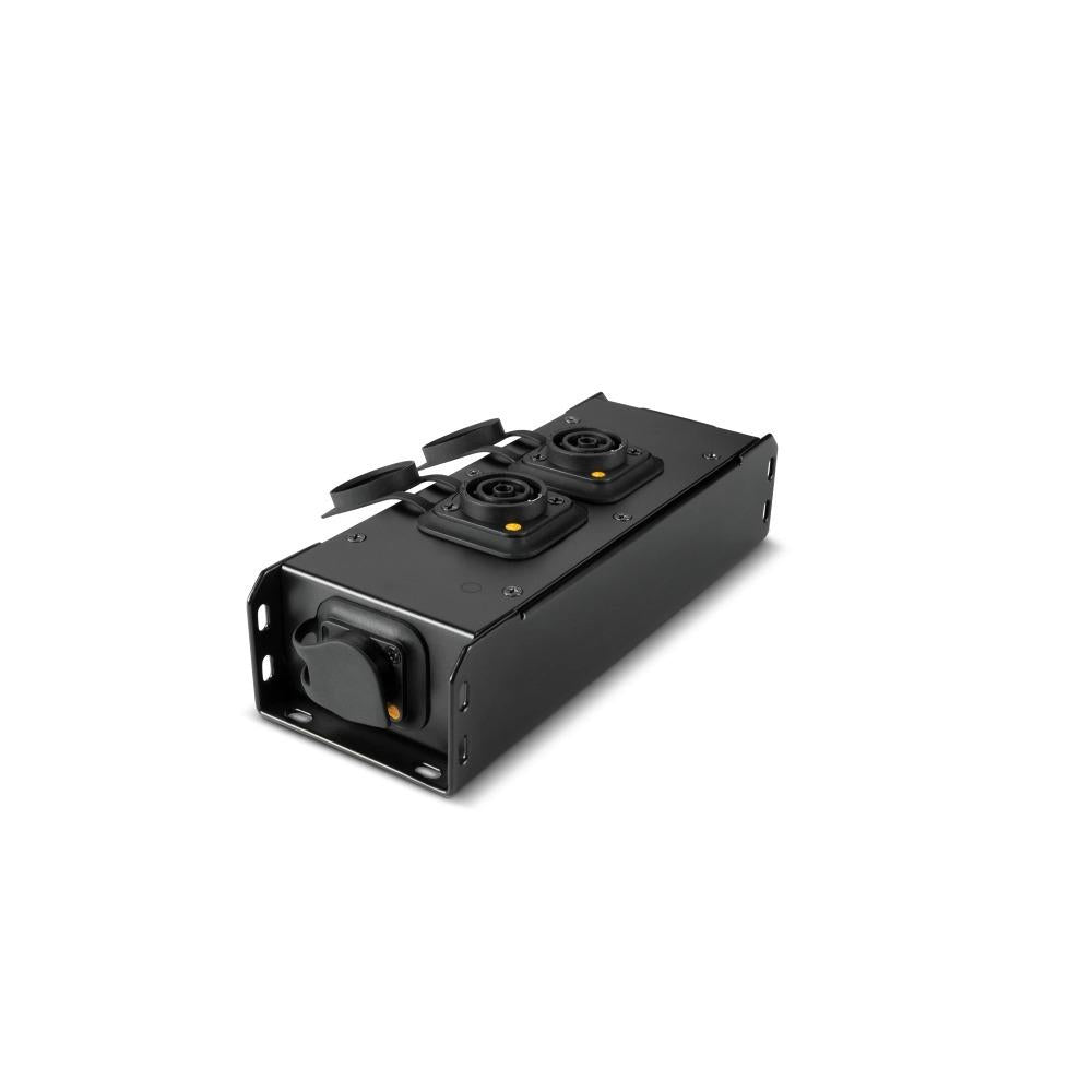 Designed for easy power distribution on stages, trusses and in gear rigs, the PROPORT 2TT features a Power Twist TR1 input connector and 3 Power Twist TR1 output connectors. Two of those are located on top of the rugged metal enclosure which also provides two female thread M10 suspension points.