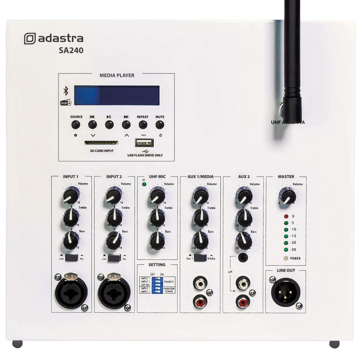 Adastra SA240 Secure Lockable Wall Amplifier 100V with UHF Mic & DAB+ Media Player