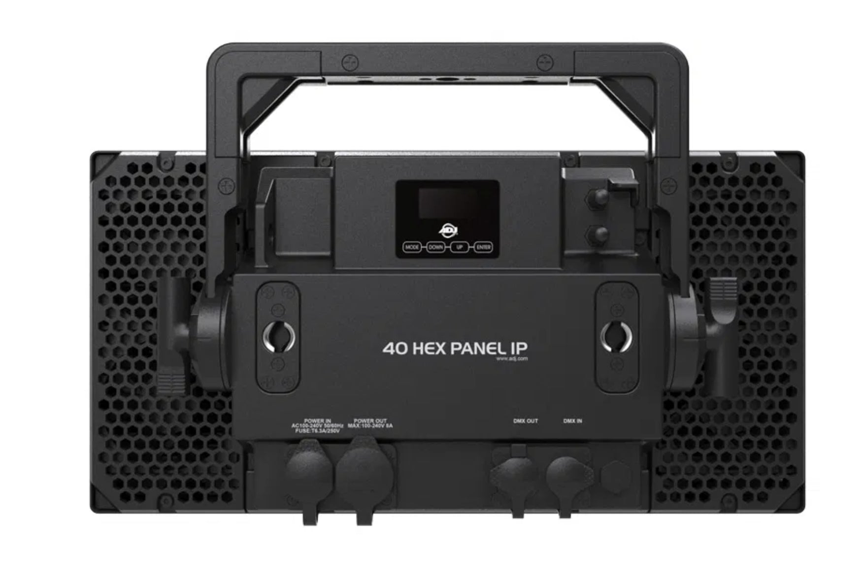 The ADJ 40 HEX Panel IP is a versatile IP65-rated fixture designed for both indoor and outdoor use as a wash light, blinder, or colour strobe. It is equipped with 40 × 20W HEX LEDs (6-in-1: RGBAL+UV) and features 10 independently controllable sections with Pixel Zone Control. Its durable all-metal black housing is IP65-rated, offering protection against dust, sand, moisture, and liquids. A magnetic, removable filter frame allows for the addition of a diffusion filter to adjust the beam angle.