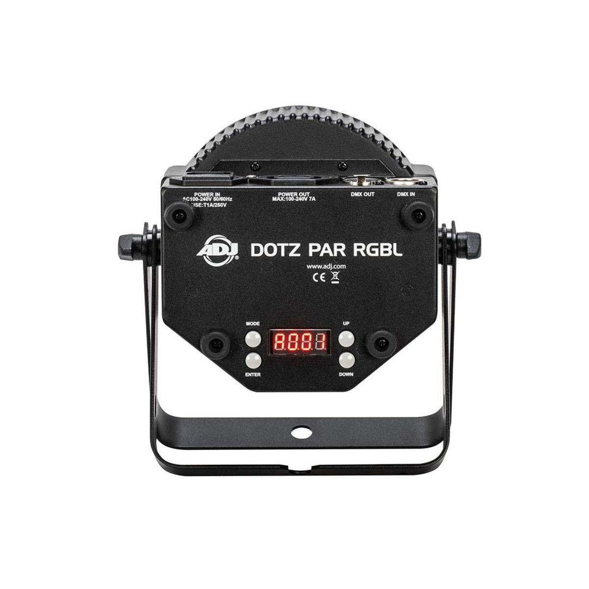 Building on the success of the original Dotz Par, the ADJ Dotz Par RGBL introduces next-gen COB (Chip On Board) LED technology with an RGBL LED engine (Red, Green, Blue, Lime) for exceptionally smooth color mixing and advanced white tuning. The high CRI (85.3) and wide white temperature range from 2700K to 6500K make it ideal for applications requiring natural color rendering and tunable white control. Compact and powerful, it features a 16x 3.5W LED array, built-in color macros, 16-bit fine control, and a full suite of dimming curves and operational modes including DMX, Sound Active, Static Color, and RF remote control. With its locking IEC power connectors, 5-pin DMX in/out, and scissor yoke, the Dotz Par RGBL is perfect for stages, broadcast, and professional environments where precision and output are key.