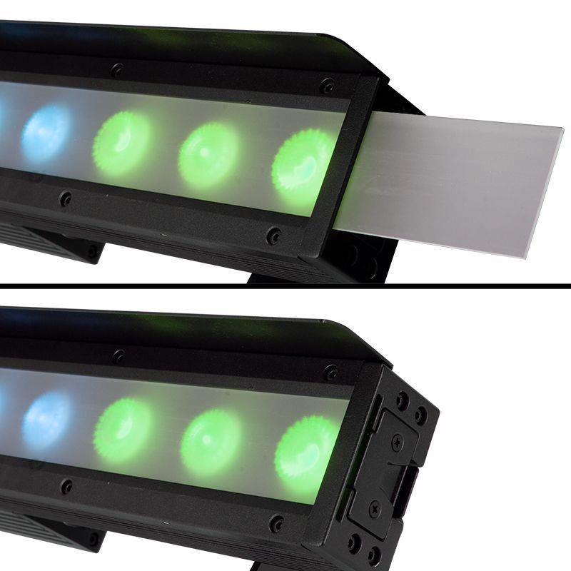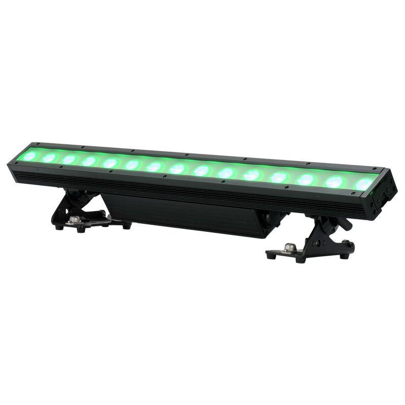 The Encore LB15IP, part of ADJ’s Lime LED Series, utilizing high output 4-in-1 color mixing LEDs that each include individually controllable red, green, blue and lime elements. Each LED is rated at 20-Watts and offers a wide variety of color options achieved through mixing the four primary colors at varying levels of intensity. These include white light with a variable color temperature of 2700K to 7000K, which can be easily selected using either linear control or one of six preset macros. Inclusion of the Lime LED element boosts both CRI and perceived brightness as well as filling in gaps in the color spectrum. 16-Bit fine control over the four primary LED elements allows for a huge variety of color possibilities, while 64 built-in macros facilitate easy selection of popular options. The LB15IP features 15 LEDs, with an equally spaced linear arrangement, which can each be controlled independently to allow for the creation of pixel-mapped effects.