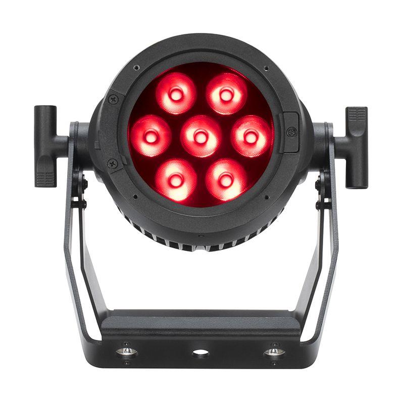 The ADJ Encore LP7IP is a versatile IP65 outdoor rated Par with 7 x 20-Watt (4-IN-1: Red, Green, Blue & Lime) Quad LEDs. With a 10° beam angle, users may produce wide washes with smooth color mixing from 64 built-in color macros utilizing red, green, blue and lime LEDs. Not only is this LED Par great for lighting indoor stages and venues, but with its IP65 rating, it’s a great solution for temporary outdoor lighting of stages or events. The IP65 rating helps protect the fixture from rain, snow and dust.