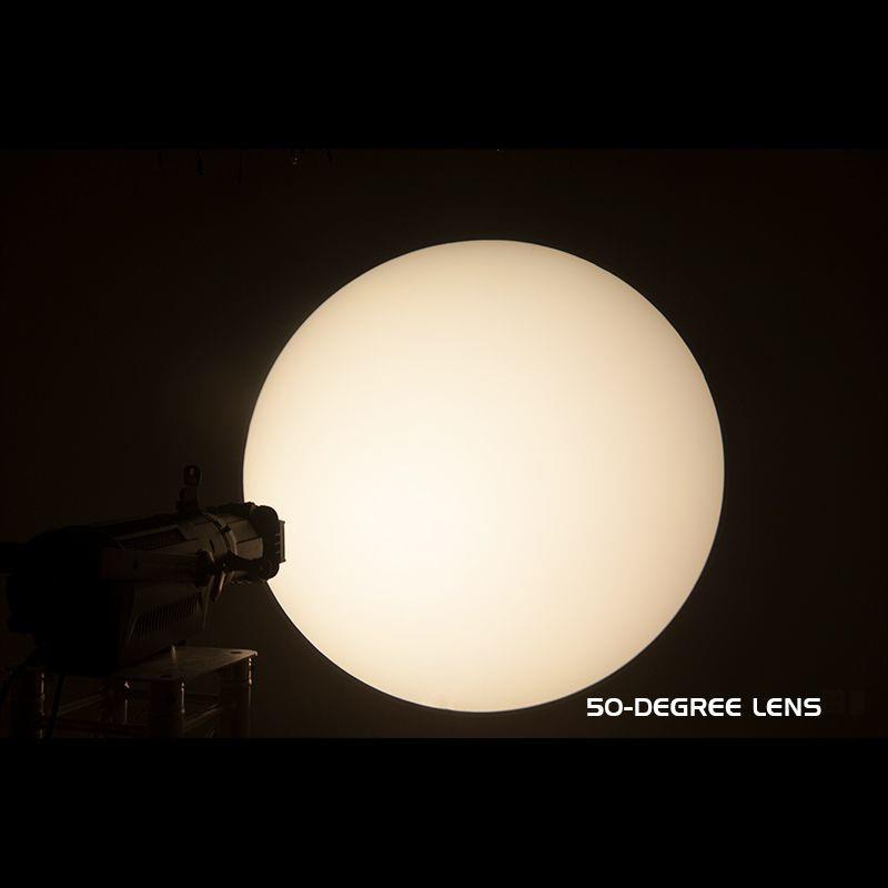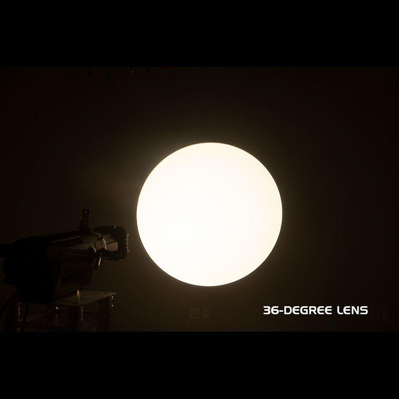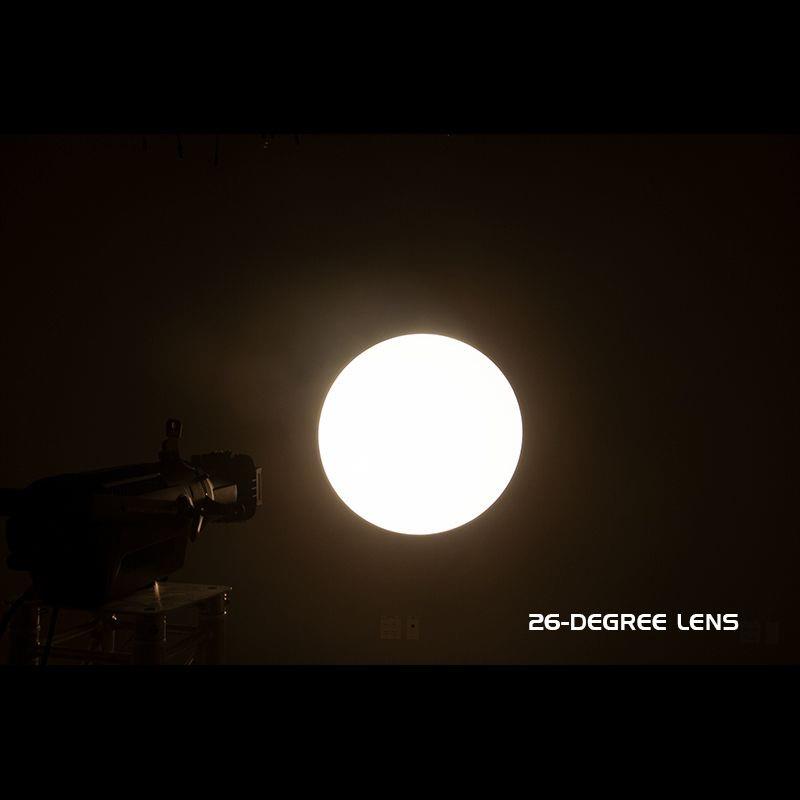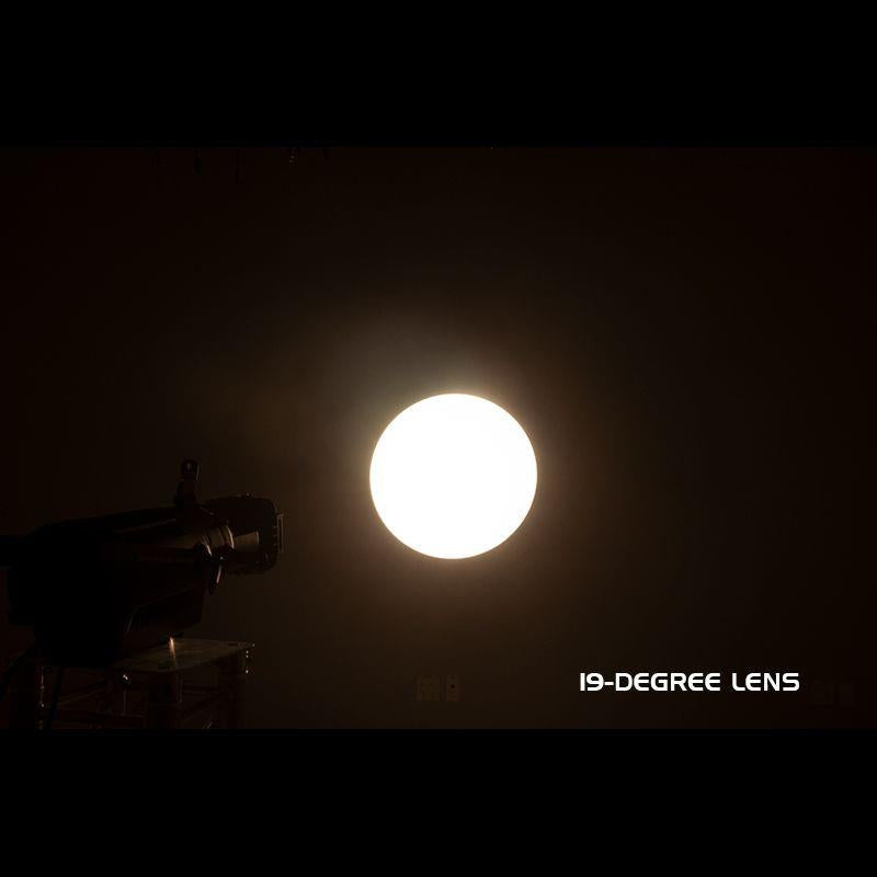 The Encore Profile Pro WW™ ellipsoidal features a high powered 260W Warm White CRI>95, 3,200K LED engine producing 10,000+ total lumens, 14°, 19°, 26°, 36°, and 50° interchangeable lens options (sold separately), (4) blade manual framing shutters, manual focus, supports B size metal HT transparency gobos, DMX controlled electronic strobe, and variable dimming curves and dimming modes, adjustable refresh frequency for flicker free operation for TV and FILM, Locking 5pin XLR In/Out and IP65 Locking Power In/Out, (4) button LCD control display panel, an integrated rigging yoke, quiet fan cooling, and a multi-voltage universal auto switching power supply (AC100-240v).