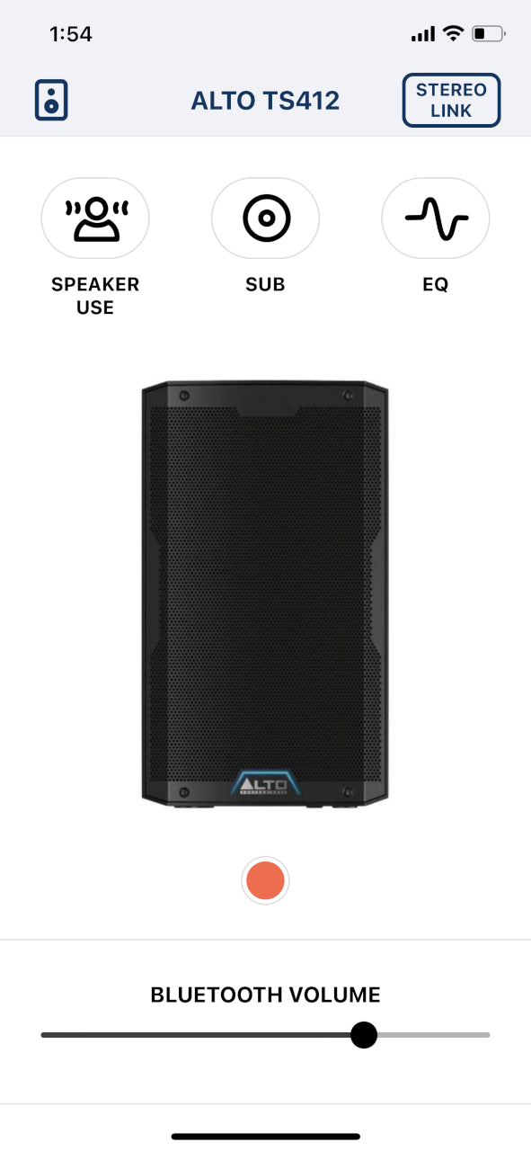 Controls Power switch, (2) gain control knobs (1 per input), (2) Mic/Line switches, Blue-tooth volume control encoder, Pairing button, Stereo Link button, Sub Size button, Speaker Use button