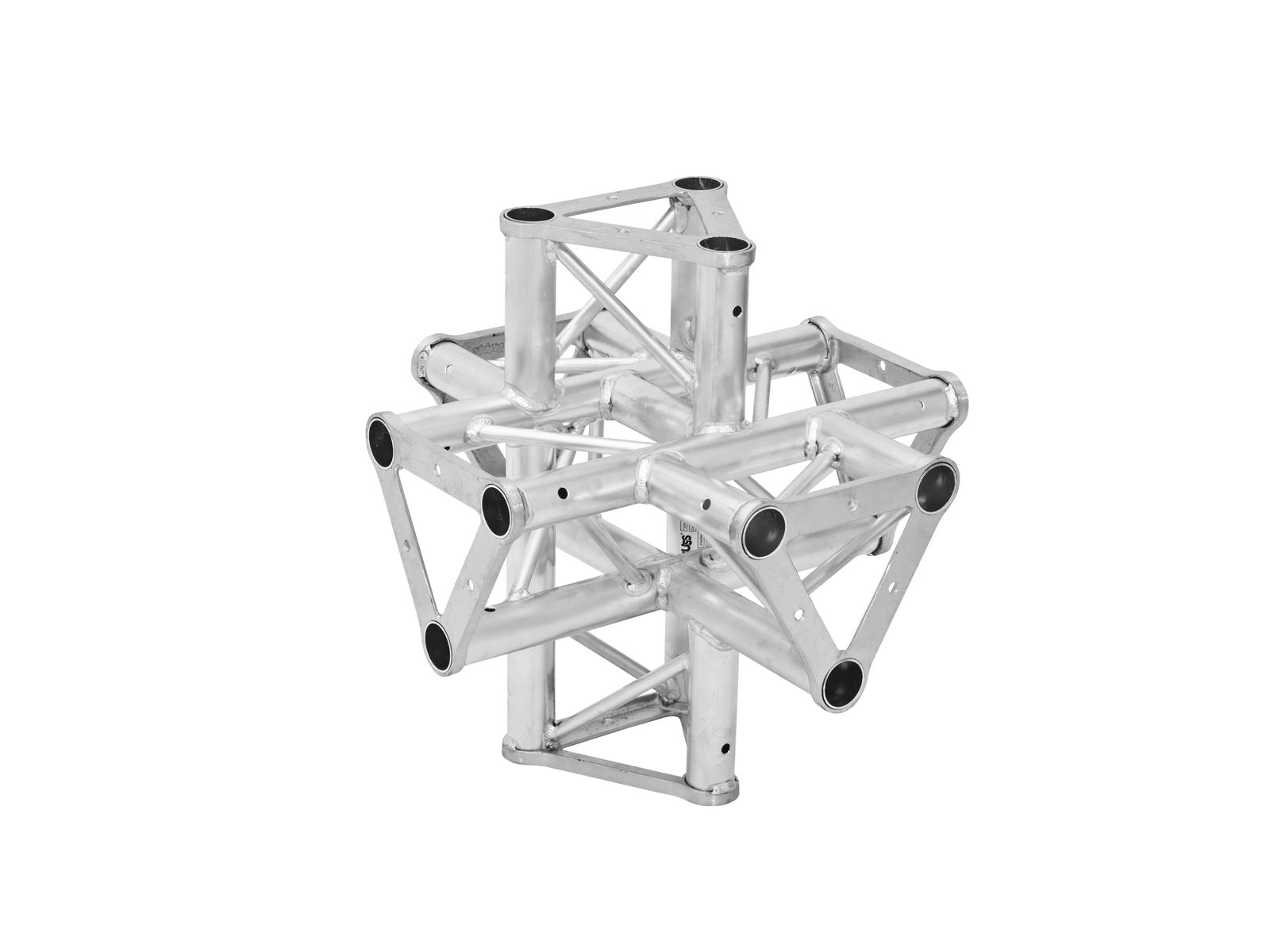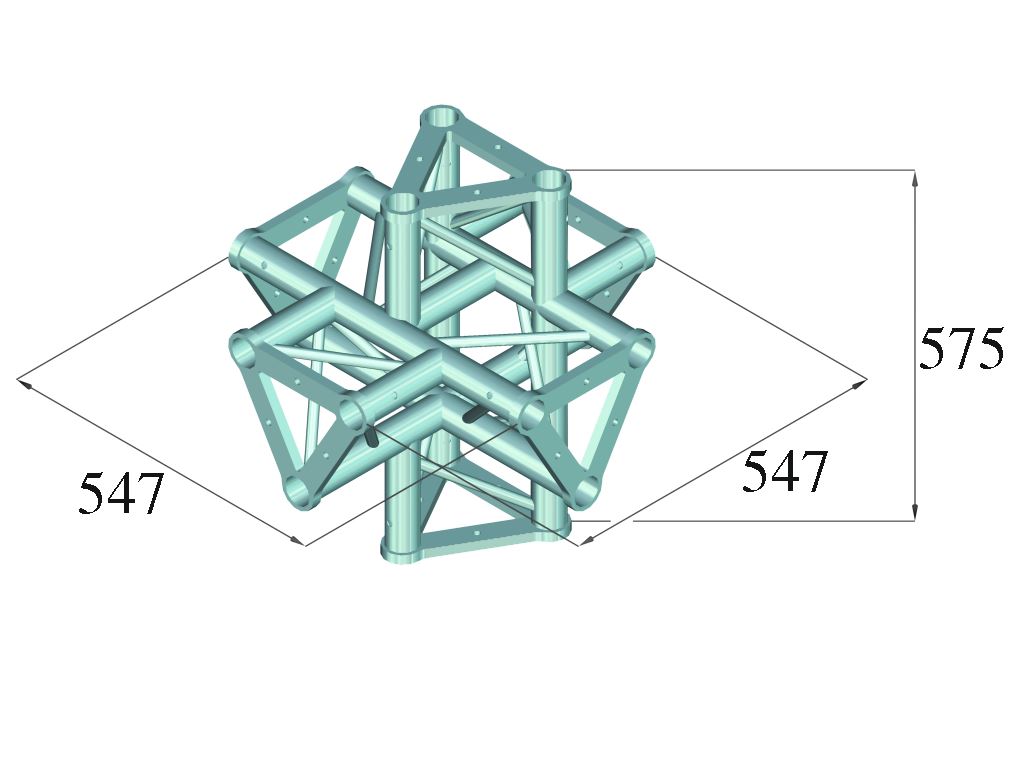 TRISYSTEM 3-point truss systemTRISYSTEM is a 3-point truss system made of aluminum. The individual elements are connected via three tube fasteners and two M10 bolts and nuts.The three main chords are made of 50 mm aluminum tube with 2 mm wall thickness and offer a good relation between strength and weight. The braces have a diameter of 16 mm with 2 mm wall thickness and leave enough space for installing couplers, hooks and clamps.With 263 and 238 mm outer dimensions, TRISYSTEM is a relatively compact truss system for higher loads. TRISYSTEM is mainly designed for permanent installations in shops, discotheques and theatres.By using the optional rapid snap connectors, this system can also be used for fair installations and event installations.Altogether a universal truss system impressing with its wide range of standard system lengths, corners and accessory.