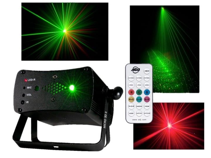 Produces more than 200 green and red laser beams that rotate back and forth creating amazing effects that can be projected on a ceiling, wall or dance floor