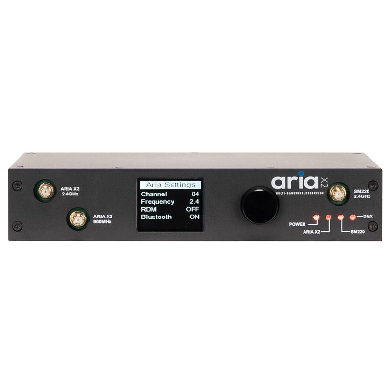 The single universe, indoor Aria X2 Bridge, the future of wireless lighting management, is here to transform your experience with unparalleled control, efficiency and ease. This comprehensive system harnesses cutting-edge technology to offer you a solution that adapts to your needs and provides a harmonious lighting experience, whether on show site or in the shop. In addition to transmitting the Aria X2 serial protocol, Aria X2 Bridge is also compatible with ADJ WiFLY, Elation eFly, Magmatic MagFly and Acclaim Aria.
