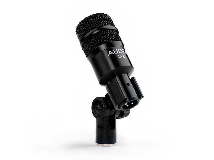 The Audix D2 is a compact, high-performance dynamic microphone designed specifically for toms, floor toms, congas, and other percussion instruments. Engineered with a high-gain VLM Type-B capsule and Audix's proprietary Sub-Impulse Technology, the D2 captures the full 3-dimensional character of acoustic instruments with exceptional accuracy. This unique technology allows the diaphragm to respond faster to sub-impulse harmonics and sonic details, resulting in a rich, true-to-source sound reproduction. Its tight hypercardioid pickup pattern ensures focused isolation, reducing bleed from nearby instruments while maintaining clear definition. Housed in a precision-machined aluminium body, the D2 offers a lightweight yet rugged build suitable for the demands of both stage and studio. With a frequency range of 44 Hz to 18 kHz and passive operation via a standard 3-pin XLR connection, the D2 is a trusted choice for drummers and engineers seeking clarity, depth, and durability in one versatile microphone.