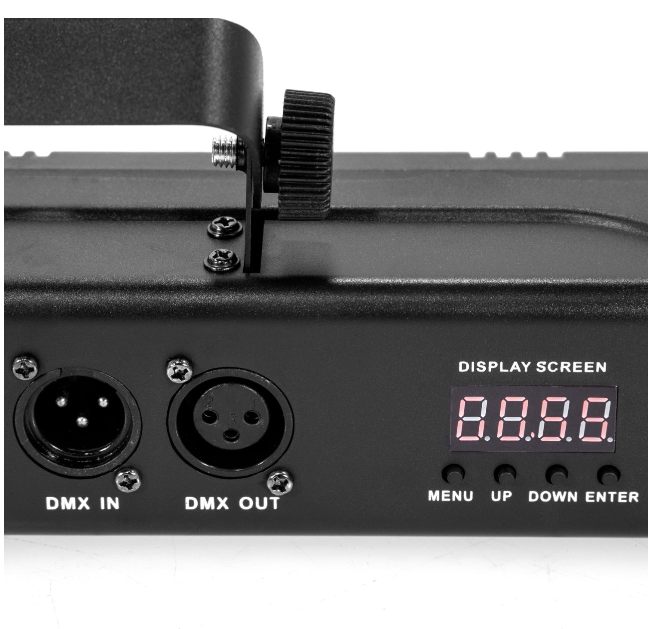 In terms of operation, the ColorBar supports automatic, sound-activated, master/slave, and DMX control modes, accessible via its 4-digit digital display or the included IR remote control. This comprehensive range of options allows for quick implementation in a wide variety of settings: concerts, DJ sets, ambient lighting, or event installations.
