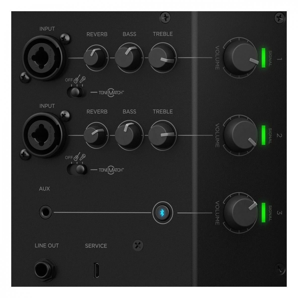 • Onboard 3-channel mixer offers independent ToneMatch®, reverb, and EQ controls on two channels, with a dedicated channel for either wired (3.5 mm) or wireless music sources.