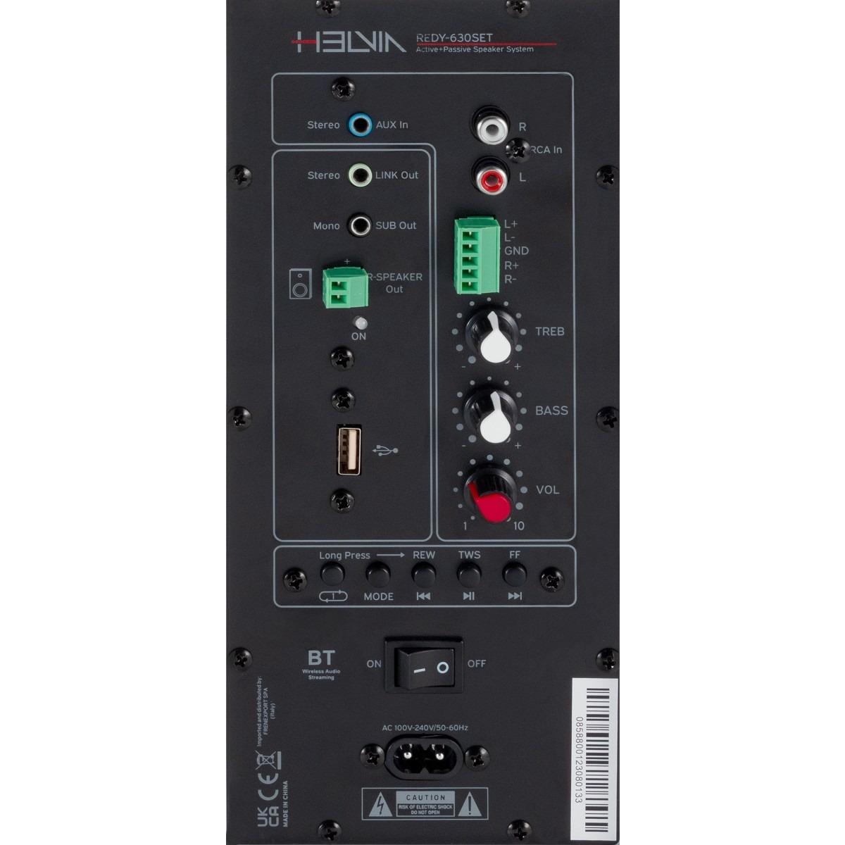 The REDY+630SET is the answer to all those small audio amplification needs (small shops, multimedia educational contexts, etc.) where practicality, ease of installation, multi-functionality and compactness need to coexist in perfect harmony. The system consists of a pair of 2-way ported speakers with 6.5" woofer and 0.5" tweeter. One of the speakers is active and features a 30+30W RMS (100+100W Peak Power) Class-D amplifier and a media player with USB input, Line Stereo input and BT streaming. The other speaker is passive and is connected to the first speaker to create a perfect stereophonic sound system. The Line Stereo input is equipped with RCA, 1/8" mini jack and Phoenix connectors, allowing connection to a wide range of portable (CD, DVD, Tuner, etc.), multimedia (mobile phones, tablets, etc.) and fixed sources. The system is also equipped with a stereo Link Out and a mono subwoofer output. This allows the REDY-630SET to be expanded to include additional speakers or sound systems. BT streaming and remote control also allow wireless operation. Use your own BT devices and access your own playlists. It also available the TWS (True Wireless Stereo) function and let the user connect to a second REDY-630SET and use the additional active speaker as Right channel or simply as wireless audio link.