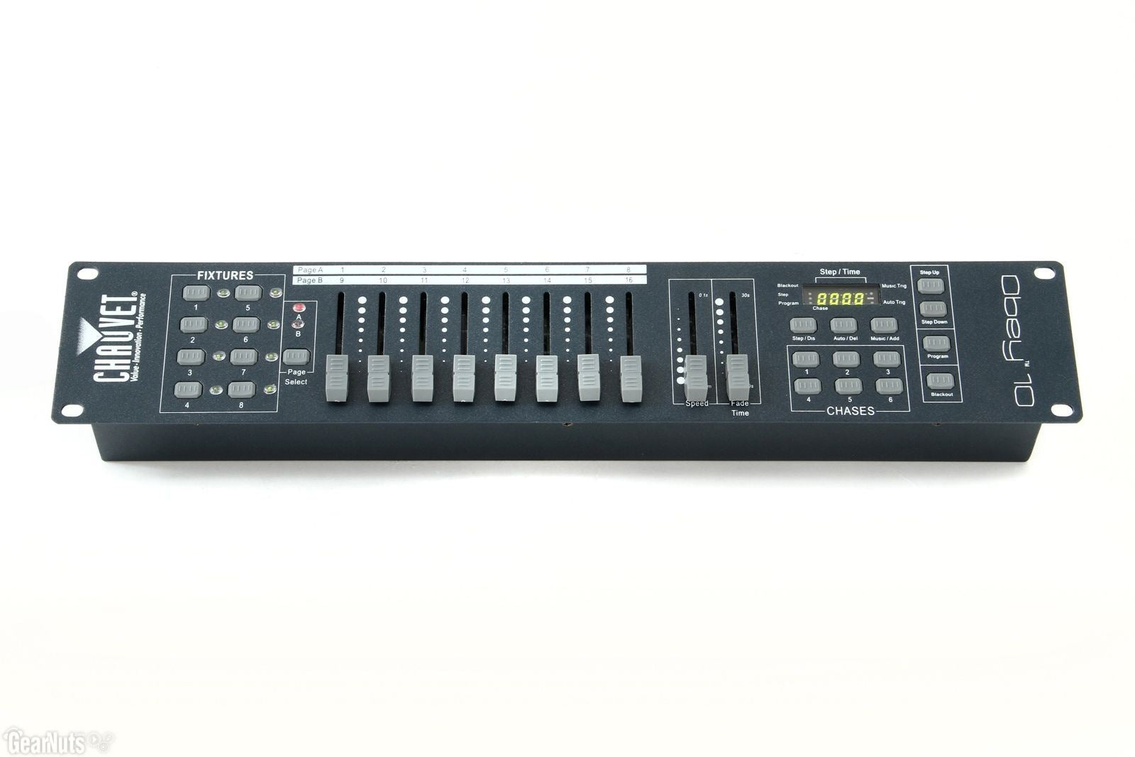 Obey 10 is a compact controller ready to handle all the complexities of today's lighting fixtures. Capable of controlling up to 8, 16-channel fixtures, the Obey 10 can store 6 sets of chases containing up to 999 scenes each. Flexibility was key in the design of the unit so CHAUVET® included the ability to reverse sliders and re-assign channels as needed. Also offered is the ability to grab any fixture on the fly, and set up your fixture's movements to be beat activated or run automatically without input from the operator.