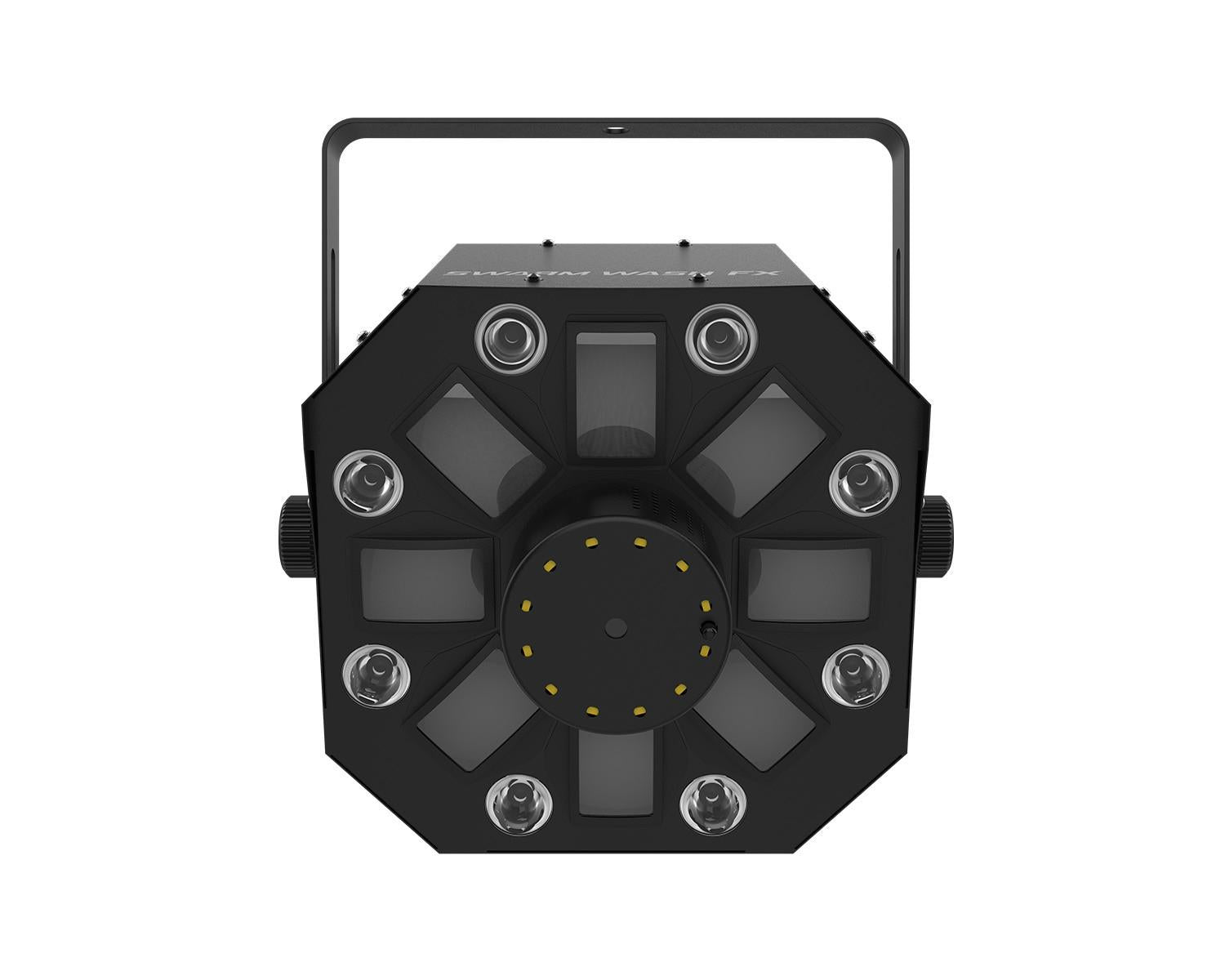 Swarm Wash FX is a 4-in-1 LED effect fixture that combines an RGBAW rotating derby, RGB+UV wash, red/green laser, and a ring of white SMD strobes. Create an endless array of looks by individually controlling each effect via DMX and master/slave modes. Other features include automated and sound-activated programs and a user-friendly menu structure. Multiple units can be power linked to save time running cables and extension cords. Fits best in the CHS-40 VIP Gear Bag.