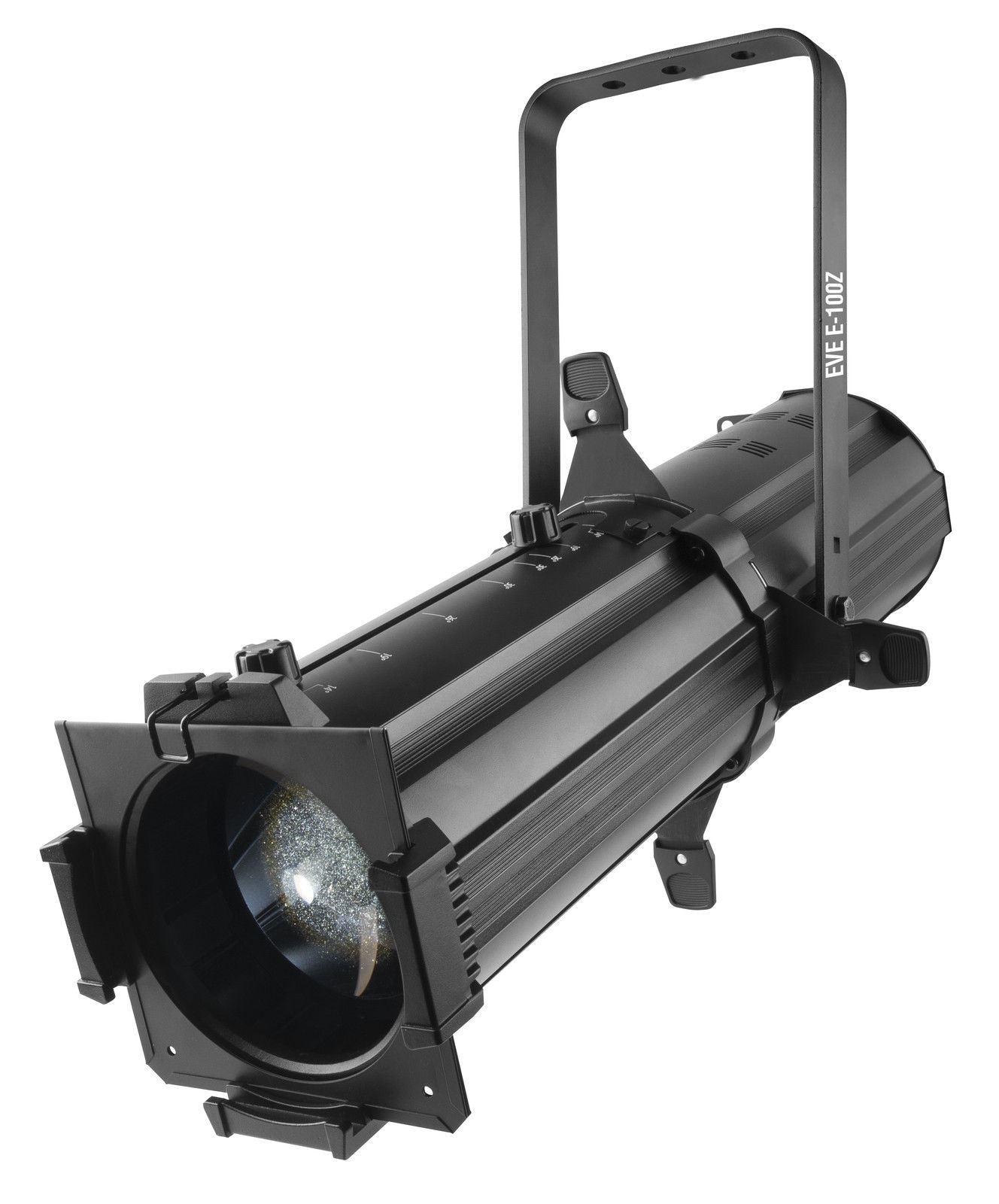 EVE E-100Z is a powerful spot fixture featuring sharp pattern projection with a 100 W warm white LED light source. This versatile fixture works with metal or glass gobos to create incredible gobo or pattern details. The manual zoom and framing shutters make it simple to control beams.