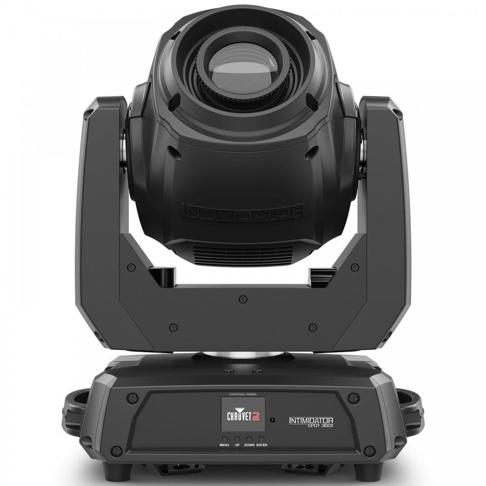 Meet Xcellence with Intimidator Spot 360X, a compact moving head packed with features to make any mobile event Xhilarating! This mover has a built-in RF receiver for wireless control using the new RFC or RFC XL optional remotes that put the power of programming a button push away. An updated CTO color wheel provides fresh color looks and a new starting home position allows for smoother programming and dual rotating prisms split the beam for thrilling effects and wider area coverage. Intimidator Spot 360X is versatile with manual zoom for short or long throw applications. Motorized zoom lets you project crisp gobos from nearly any distance and beams always remain on the dance floor using the built-in, innovative Totem mode. Intimidator Spot 360X also lets you set, save, and recall 1 scene manually, directly from the full color LCD display.