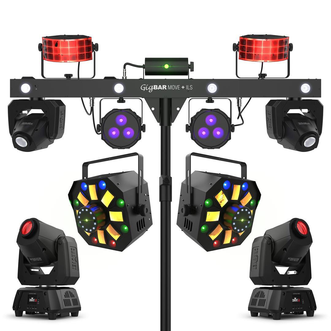 The future of easy lighting synchronization is here with GigBAR Move + ILS. This powerful member of the GigBAR family controls the Integrated Lighting System (ILS), the dynamic lighting technology that provides an advanced, coordinated light show across multiple fixture types. GigBAR Move + ILS can control any ILS-enabled fixture, wired or wirelessly. GigBAR Move + ILS is a 5-in-1 lighting system that includes moving heads, derbies, washes, a laser and strobe effect pre-mounted on a single bar. Easy navigation and access to all the powerful 32-watt moving head functions can be accessed directly from the full-colour LCD display and Totem Mode keeps the moving heads focused on the dance floor. Built-in UV LEDs illuminate fluorescent objects for dazzling blacklight effects. GigBAR Move + ILS gives you individual control of each effect to ensure your show looks the way you need it to, but gone is the need to aim a remote directly at the unit! The included RF remote triggers built-in shows without needing line of sight operation. Other easy control options include stand-alone mode, DMX, or wireless footswitch. The GigBAR Move + ILS package includes a tripod, wireless footswitch, RF remote and FREE carry bags to ensure quick setup.