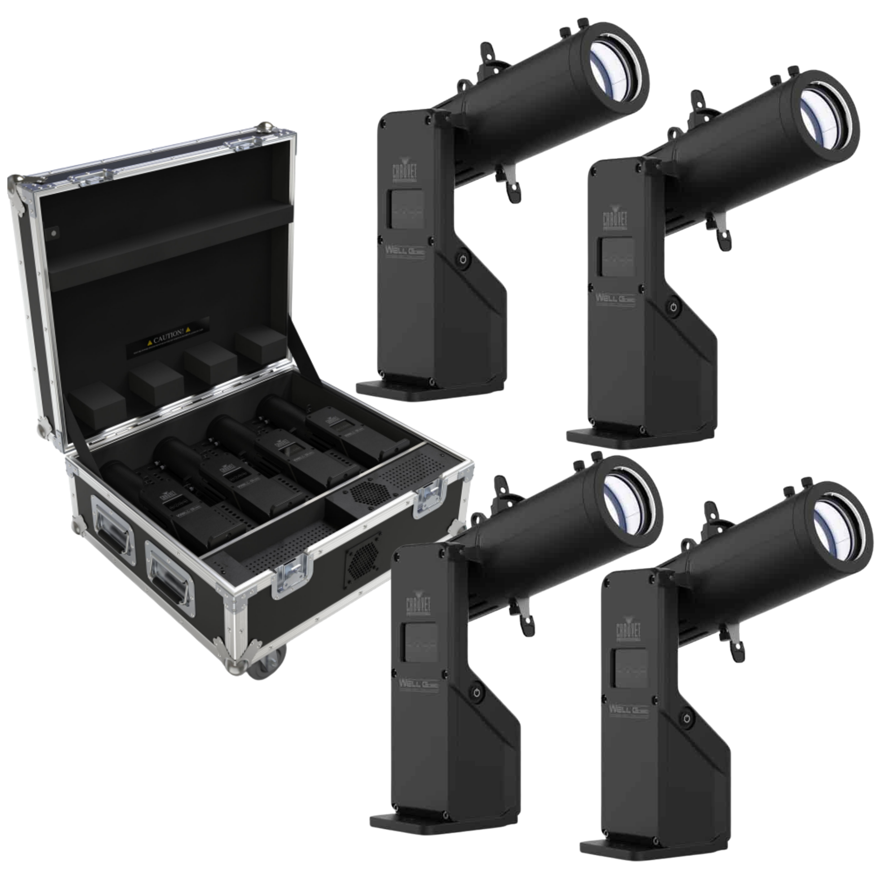 WELL Gobo is a compact, outdoor-ready, battery-powered gobo projector ideal for corporate and event rental inventories. Compatible with both glass and metal gobos, the unit also features a manual 20 to 41-degree zoom and framing shutters for flawless shutter cuts. Set it then forget it with onboard OLED display, and control your way with WDMX to link to WELL COM. WELL Gobo includes multiple mounting options and comes in a pack of 4 with a self-charging case.