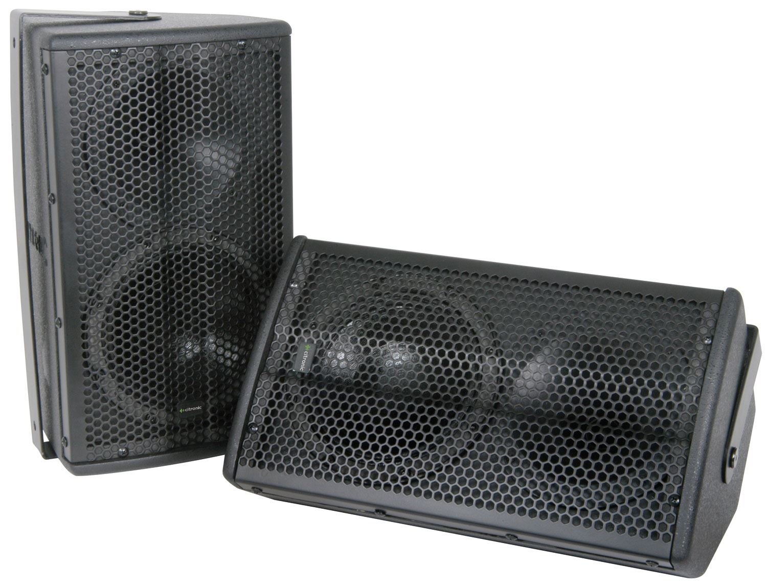 A pair of speaker enclosures made from premium Russian ply with multi-angle design for arraying and wedge monitoring. Surface mounting via the included bracket or flying points afford convenient installation in bars, restaurants and meeting rooms. Custom designed drivers project full range output with a wide dispersion for excellent coverage to listeners.