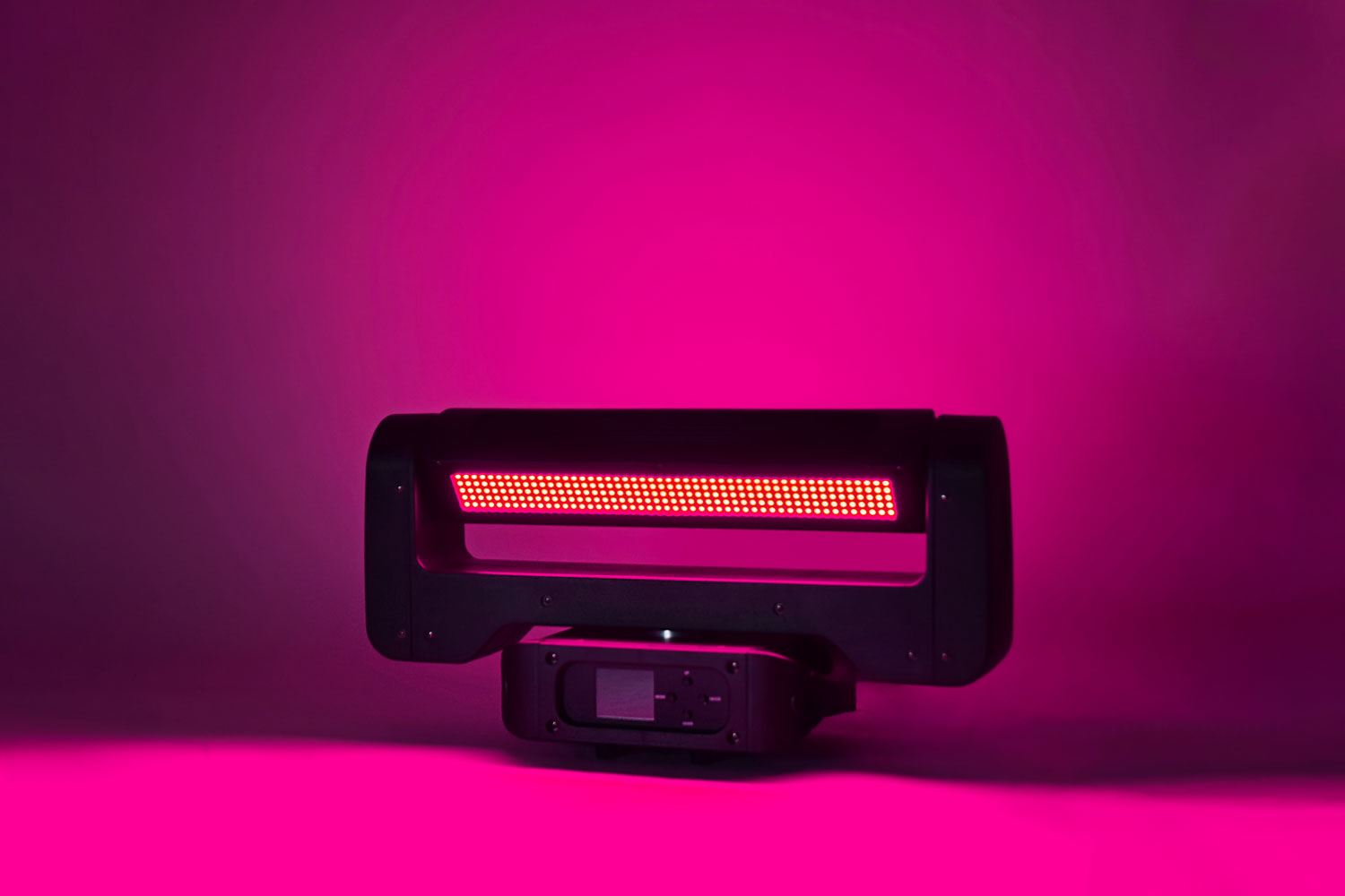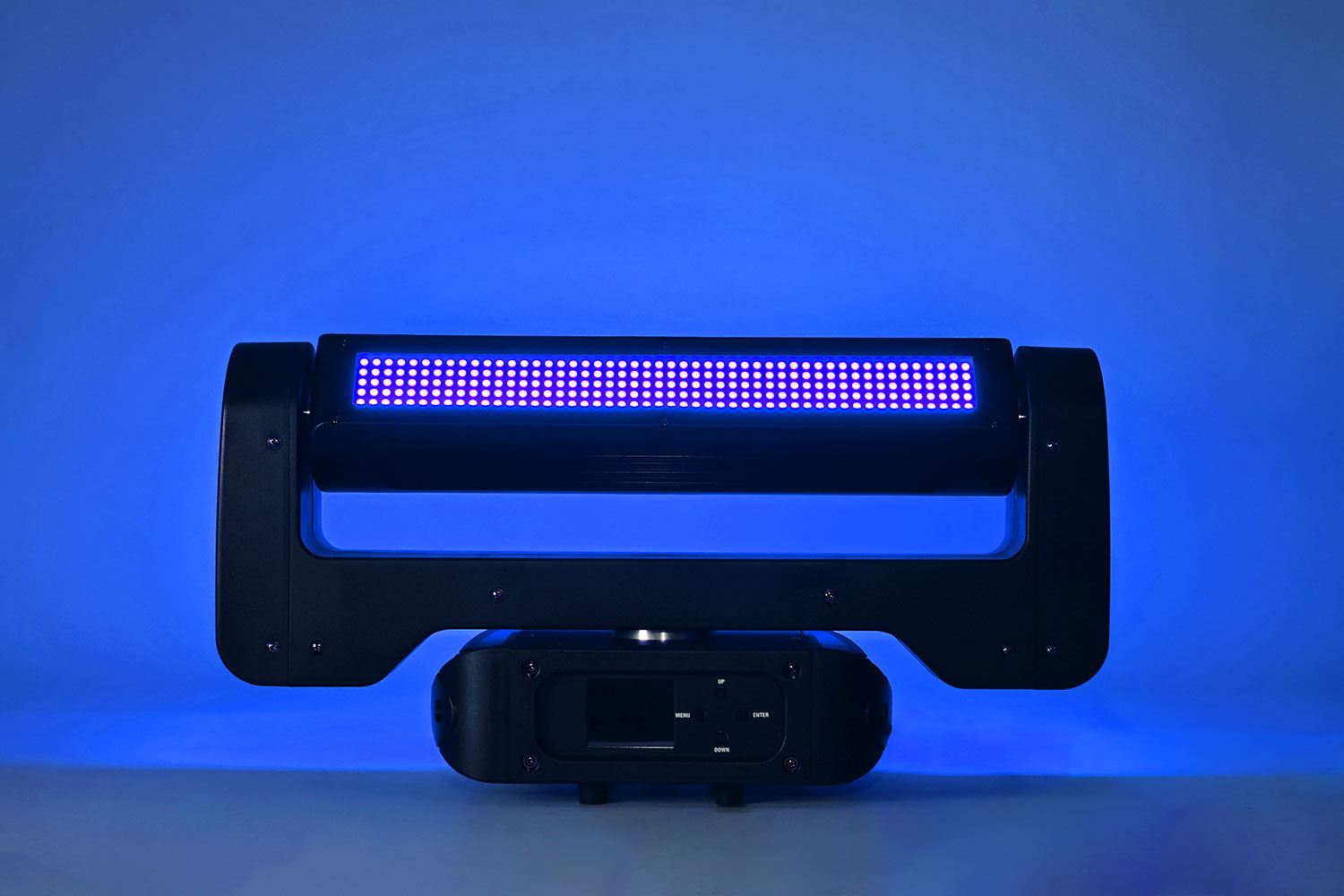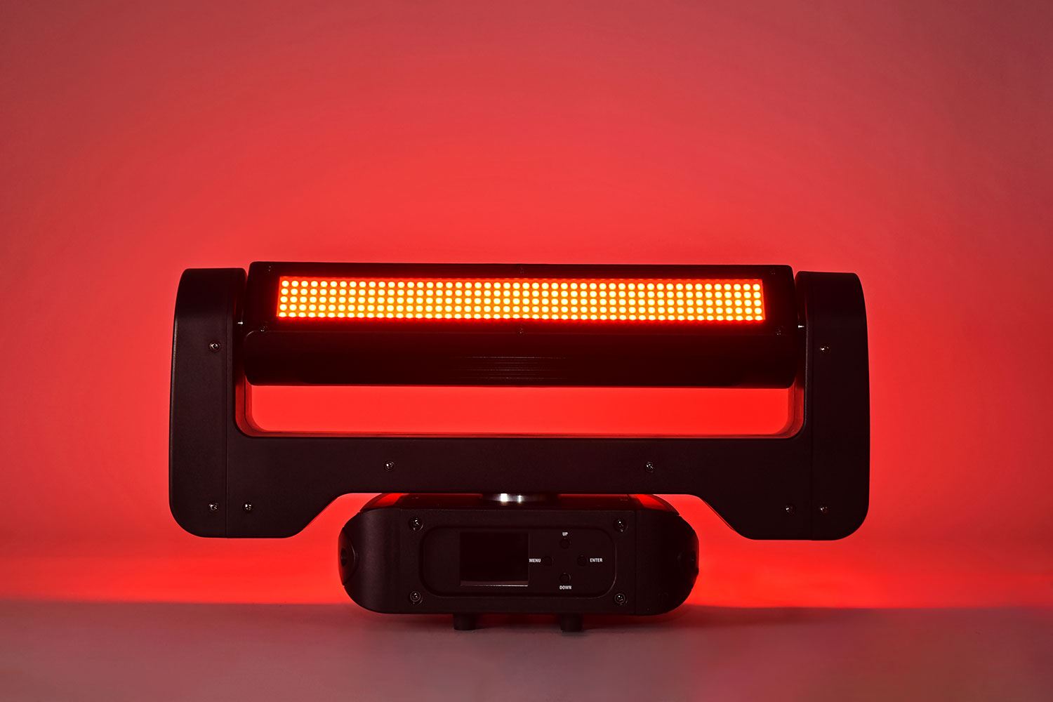 A mesmerizing moving head comprising 2 panels of 250 bright RGB LEDs which combine with infinite Pan and tilt movement to provide room filling effects from any position.