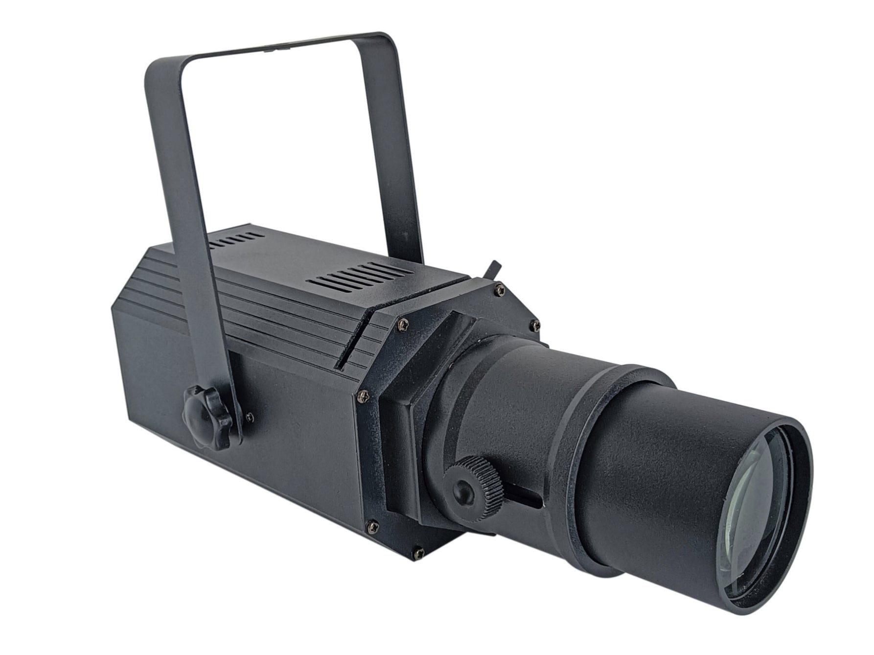 A compact LED profile spotlight, ideal for performances and venues where a controlled spot is required. Switch between RGB solid colours or various colour change options using the control panel on the back of the unit, supplied IR remote control or by DMX connection if required. Fitted with a bright 60W LED, the beam can be manually focused on the desired surface up to 8m away and reduced in size using the built-in iris shutter. Ideal for mirror balls, performers, stage areas, or display features where accurate and consistent illumination is required.