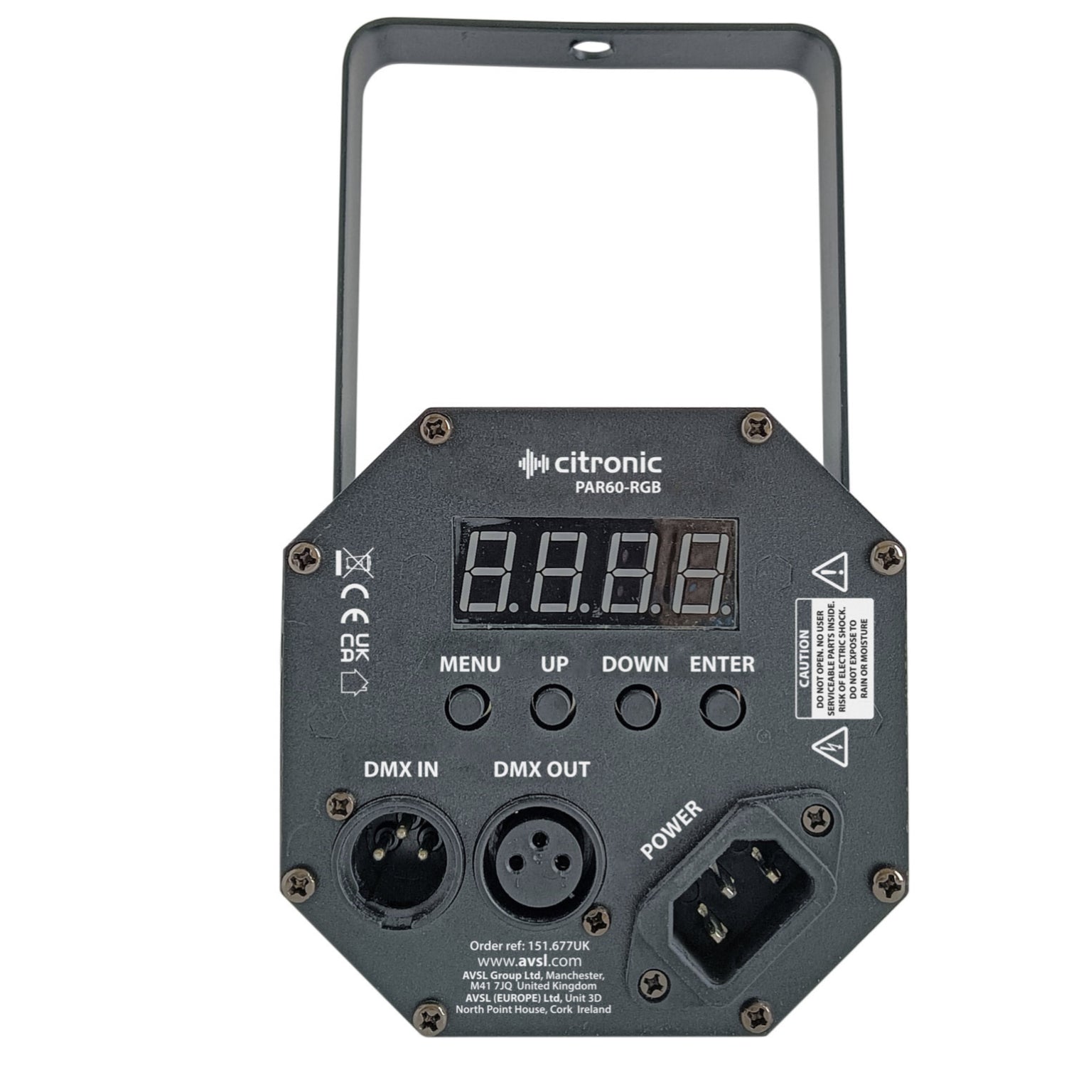 Connections: Power in (IEC), DMX in/out (3-pin XLR)
