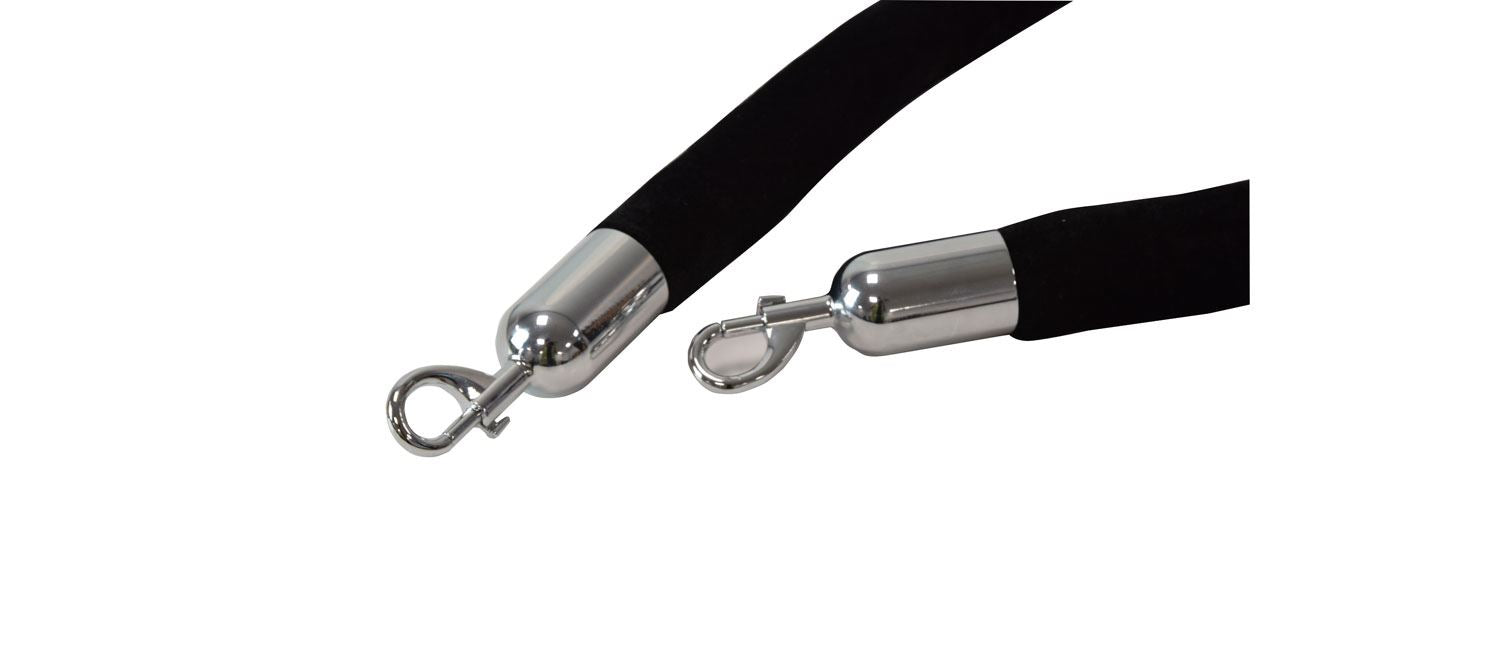 An efficient velvet effect security rope, ideal for VIP queue barrier posts. Features a 1.5m twisted rope giving an attractive appearance and polished stainless steel trigger hooks on each end for a secure and stable fixing.