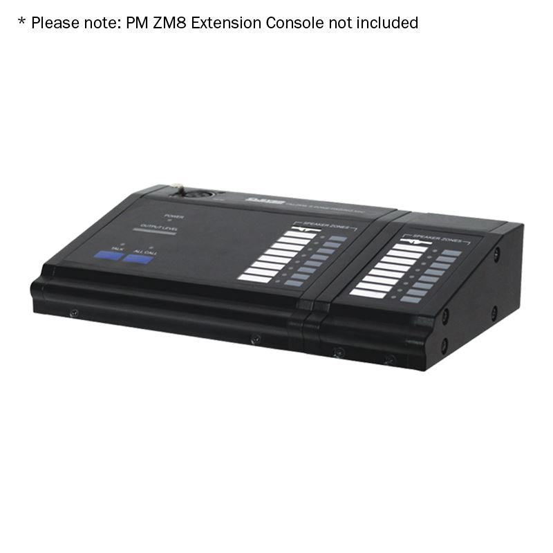 The PM ZM 8 is a dedicated remote paging console for the ZM 8 Zone Mixer which is connected through a standard CAT 5 cable for zone announcement or communication at a remote location from the ZM 8.