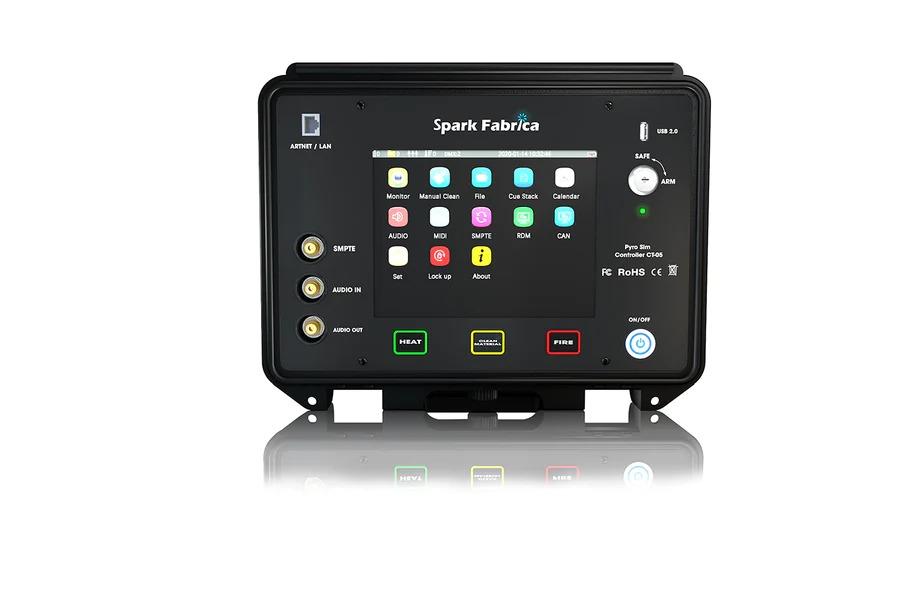 Cold Spark Machine Smart Console. Enhance your sparkular effects! A brand new digital console capable of working with special effects, audio and video. Through a solid network protocol, it allows precise and reliable control of SPARK FABRICA machines. This new console is perfect for weddings, sporting events, concerts and any other context where maximum execution precision is sought.