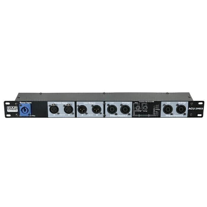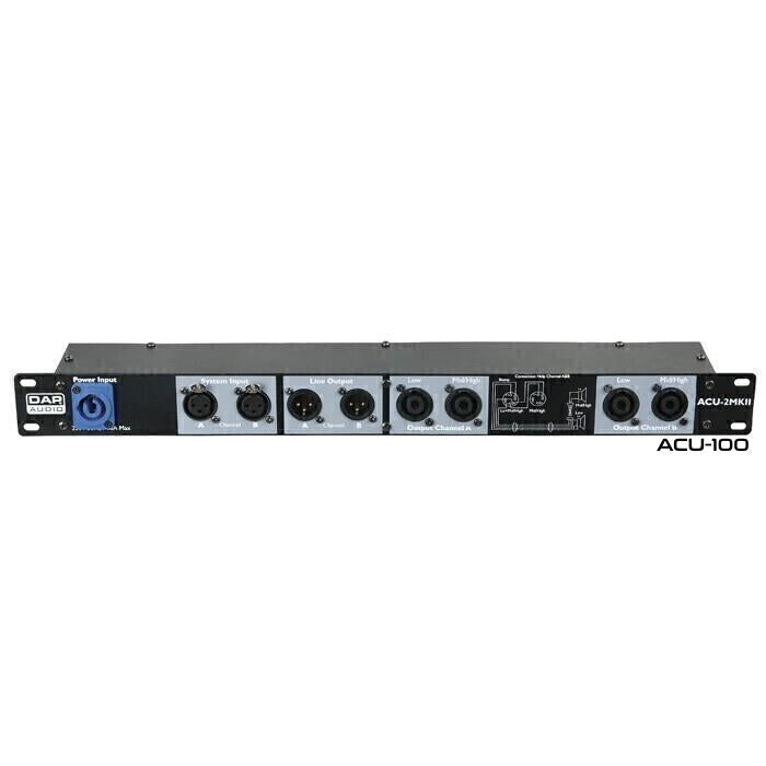 The DAP ACU-100 is a professional connection unit with 2 x XLR line-in, 2x XLR line-out and Speakon speaker-connectors for Low, Mid/High and bi-amping operation