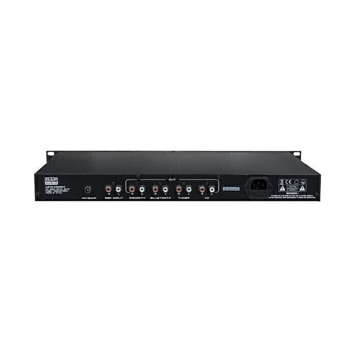 The DAP MPR-200BT is a professional multifunctional 19"/1U media player and recorder. The different sources you can play and record are: DISC (CD), AUX (RCA), Card (SD) and USB. In addition, it is equipped with an FM tuner and Bluetooth module. The Bluetooth module has a wide range of up to 25 meters, depending on the environment.