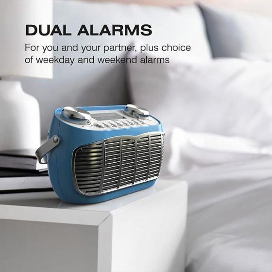DUAL ALARM CLOCK WITH SLEEP TIMER: The Detroit Radio makes a great bedside clock with a choice of weekday and weekend alarms so you can wake up at different times. The clocks are continually kept up to date via radio signal – so even when the clocks change you can be sure to wake up on time.