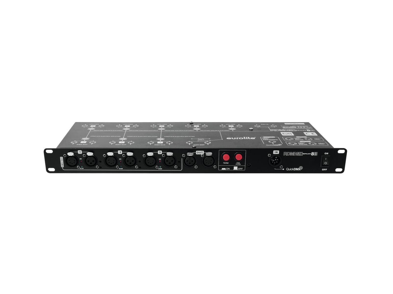 Splitter with 8 galvanically isolated outputs, 3/5-pin & QuickDMX XLR sockets