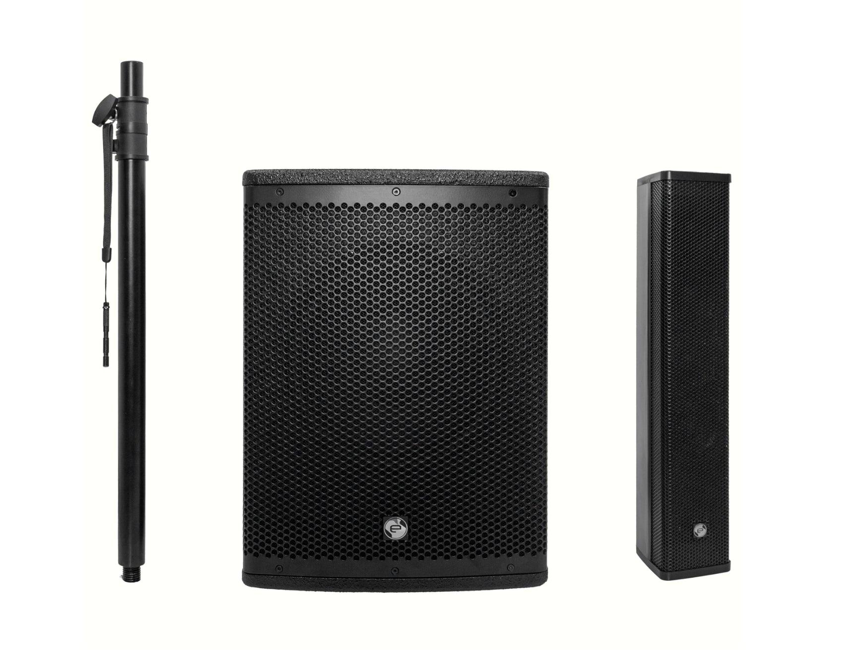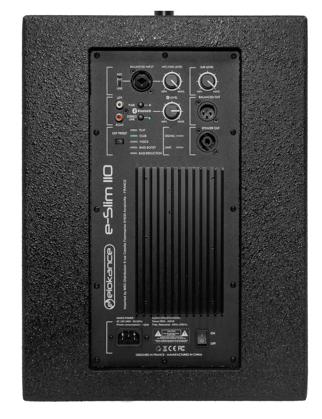 This professional sound system combines performance, versatility and ease of use. With an RMS amplification power of 400 W and a maximum power of 800 W, this system is ideal for events such as weddings, bars, restaurants and mobile DJs. It includes a 10-inch woofer with a 2-inch voice coil and four 3-inch neodymium tweeters, offering a frequency response of 150 Hz to 20 kHz for the satellites and 42 Hz to 150 Hz for the subwoofer. The five-mode DSP allows easy customisation of the frequency response for different environments and uses, while Bluetooth 5.0 connectivity and TWS functionality provide the flexibility to stream music wirelessly from compatible devices. The ABS enclosure of the satellites offers a horizontal directivity of 120° at 1 kHz, while the wooden subwoofer ensures a clear and precise acoustic response. With a total net weight of 15 kg and a total gross weight of 16 kg, this system is easy to transport, while its 100 W power consumption makes it energy-efficient. In short, if you're looking for a versatile, powerful and easily transportable PA system for your business events, look no further than this two-way active system with Class D amplifier and stereo Bluetooth.