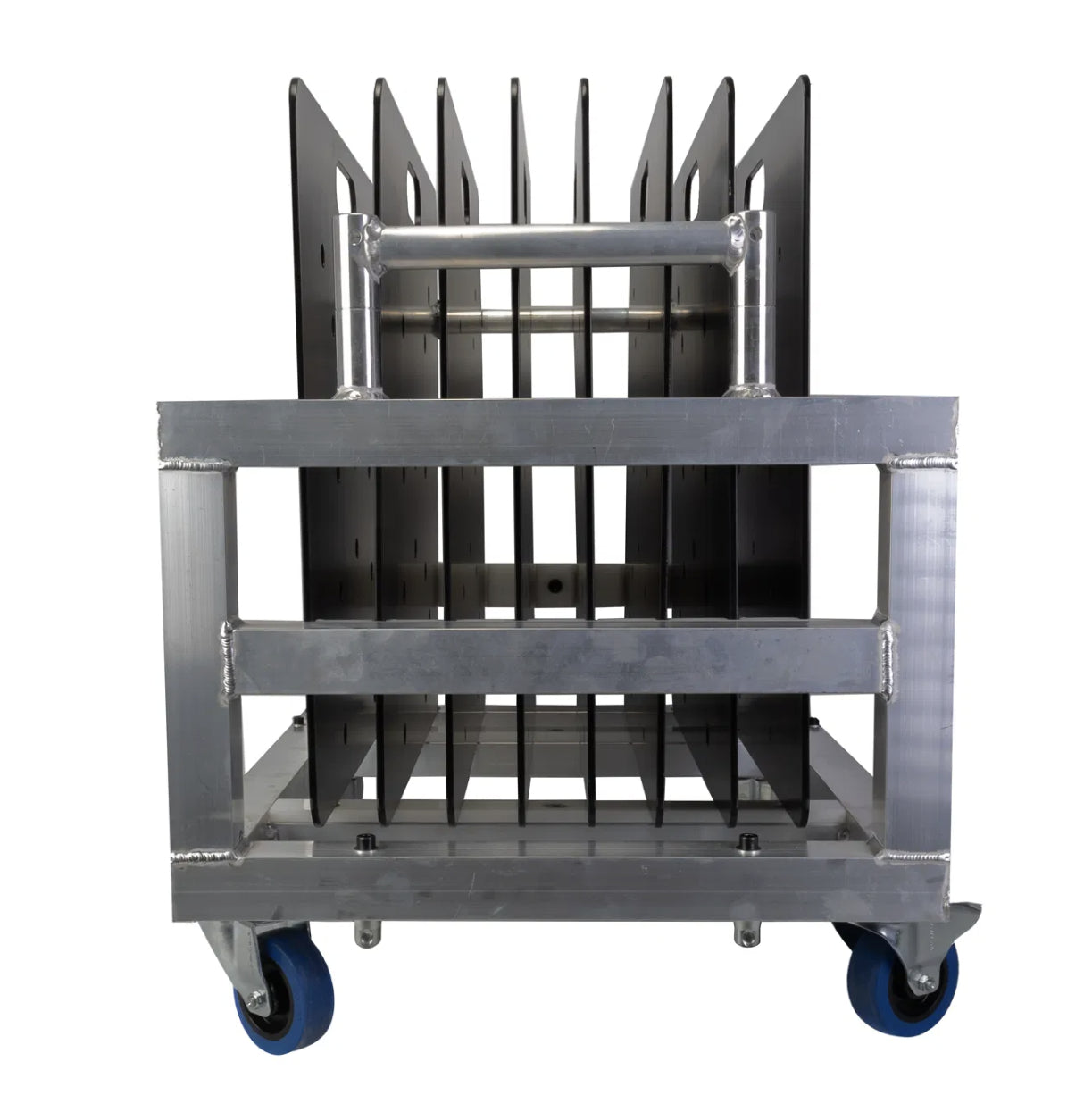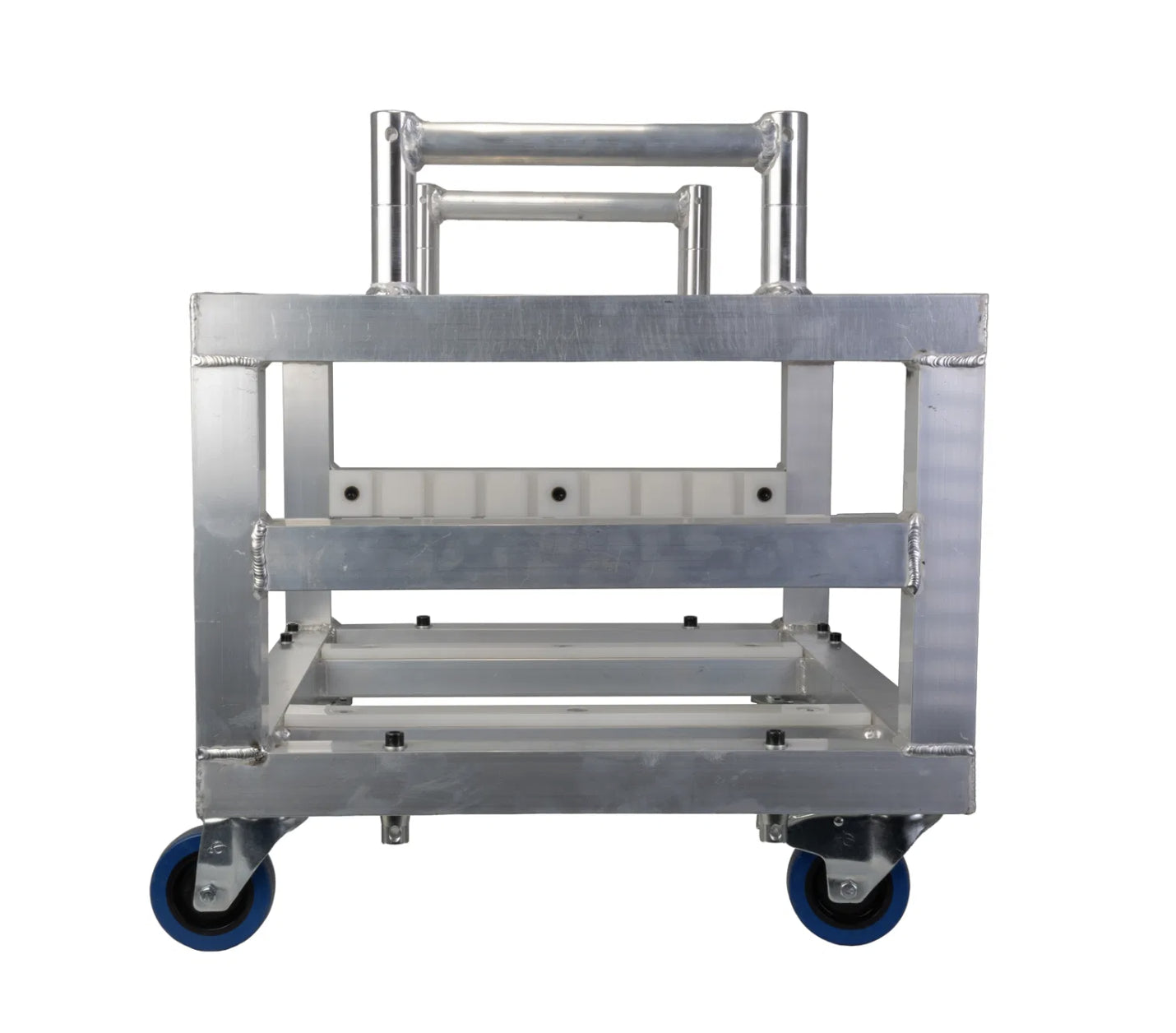 The Elumen8 600mm Base Plate Trolley is a lightweight and compact storage and transportation aid designed to hold up to eight 600mm base plates. The trolley features a fully welded aluminium frame engineered for exceptional strength and durability. It comes standard with castor wheels (2 braked, 2 unbraked), and each cart includes polyamide base plate holders to prevent scratches on the plates themselves. Designed for effortless handling, the trolleys can also be stacked when empty, helping you optimise valuable storage space.