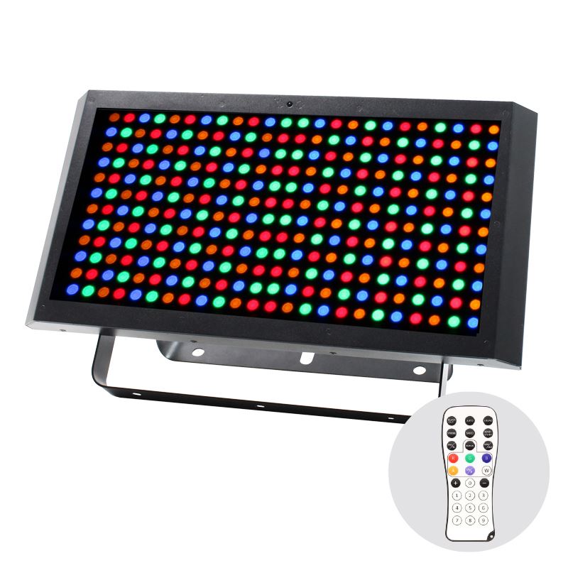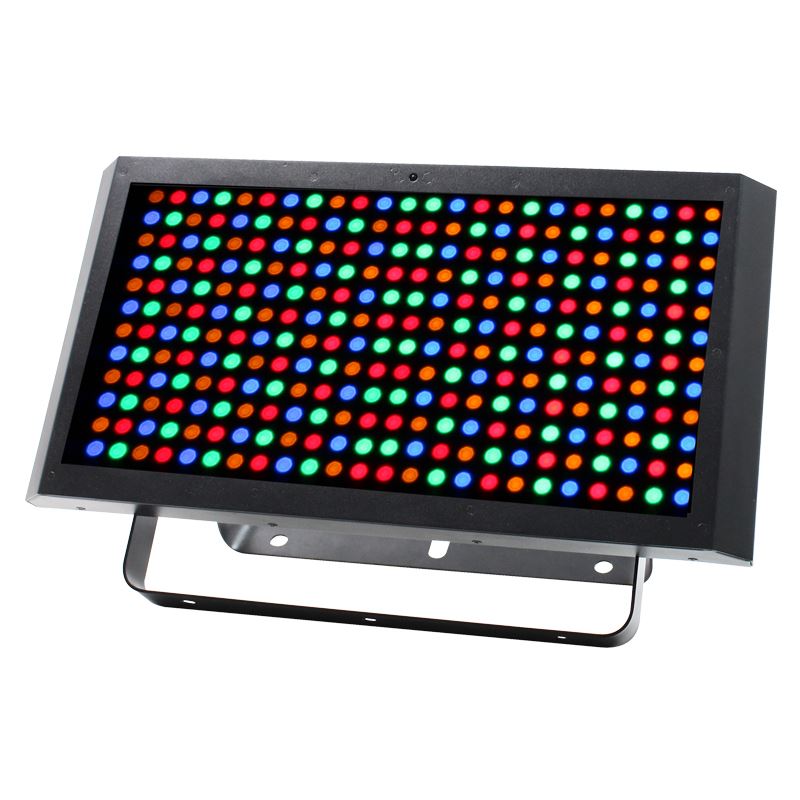 This slim LED panel is powered by 288 8mm red, green, blue and amber LEDs. Featuring an ultra-wide 120-degree beam angle the fixture is suitable for washing small stages and dancefloors with intense colour. Static colours can be selected from the onboard menu along with built-in programs, master-slave, sound activation and DMX. Also included is an IR remote for ease of setting up and use.