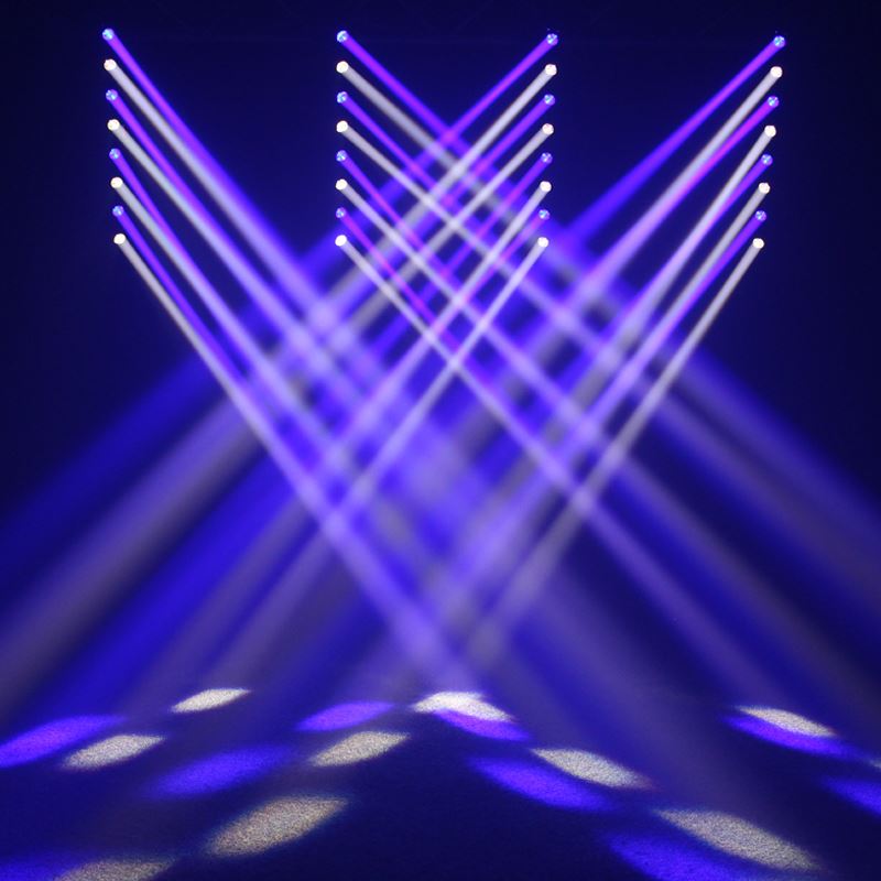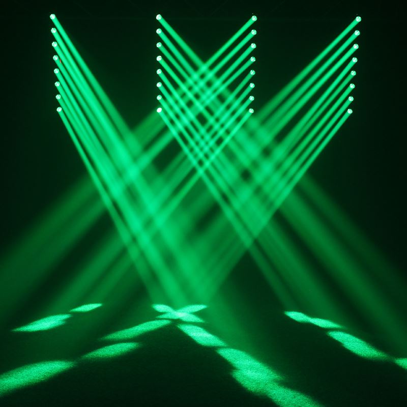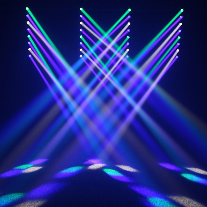 The Swing Batten is a dynamic multi-beam effect dispensing eight intense, long-throw beams generated by the 10W CREE quad-colour LEDs. The batten cuts through haze with ease producing stunning beam effects. The 4 button menu system allows control of master/slave functions, and the fixture can be also be operated in sound active and DMX modes.