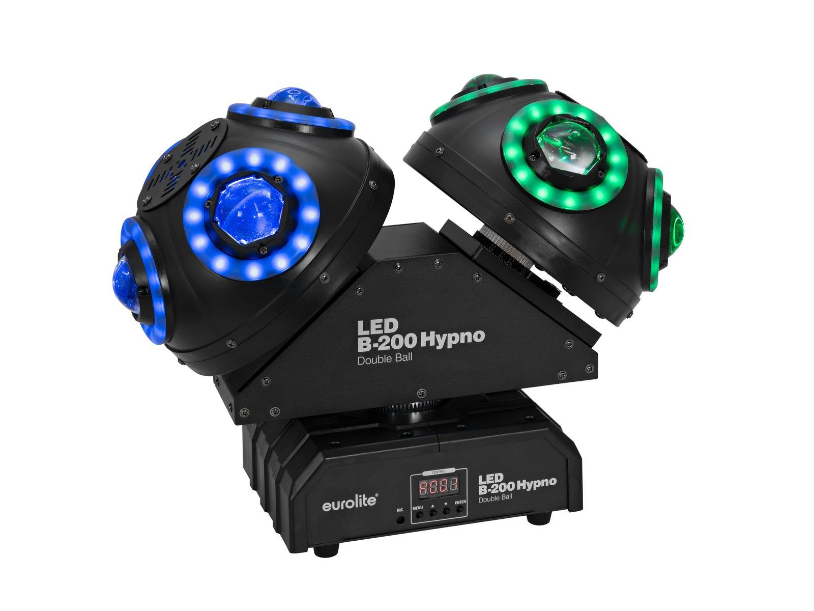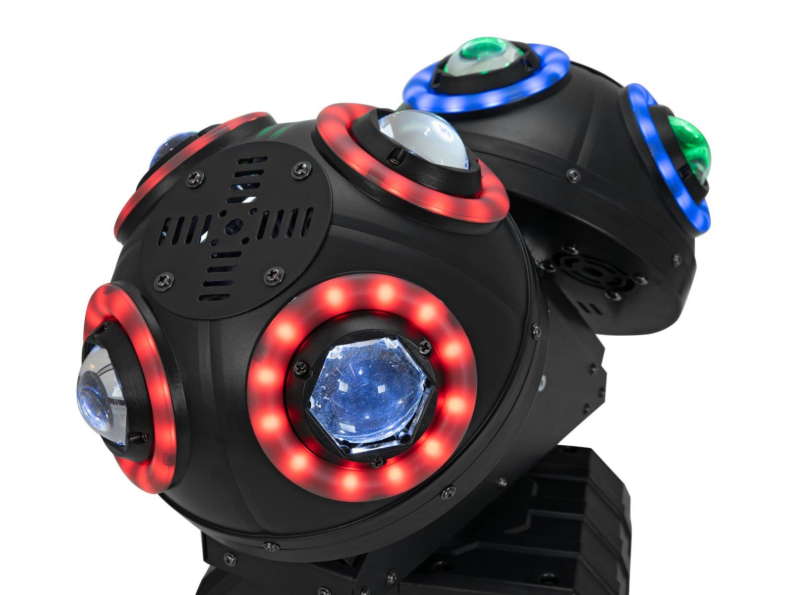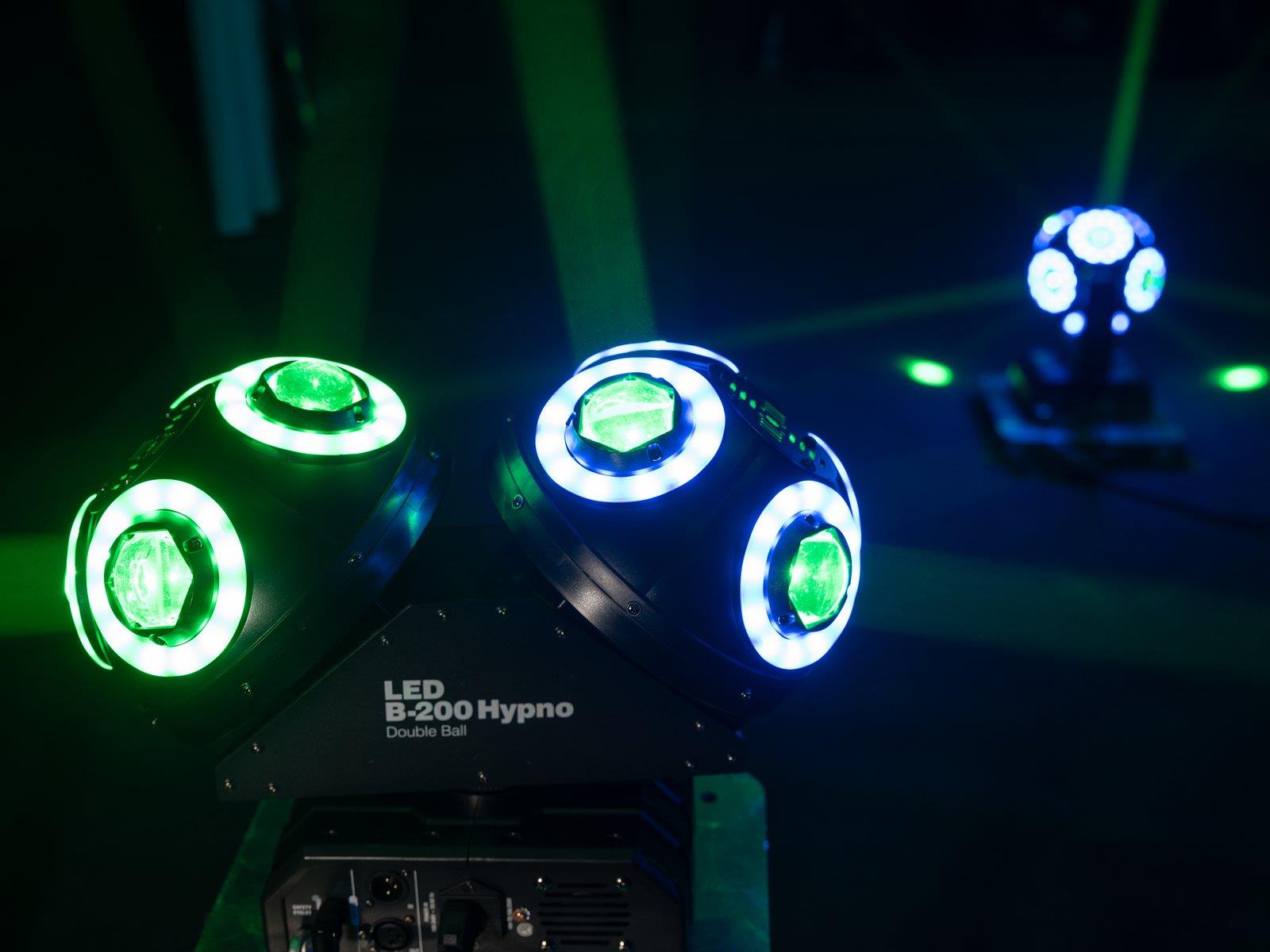 LED beam effect with RGBW color mixing and 8 RGB hypno rings