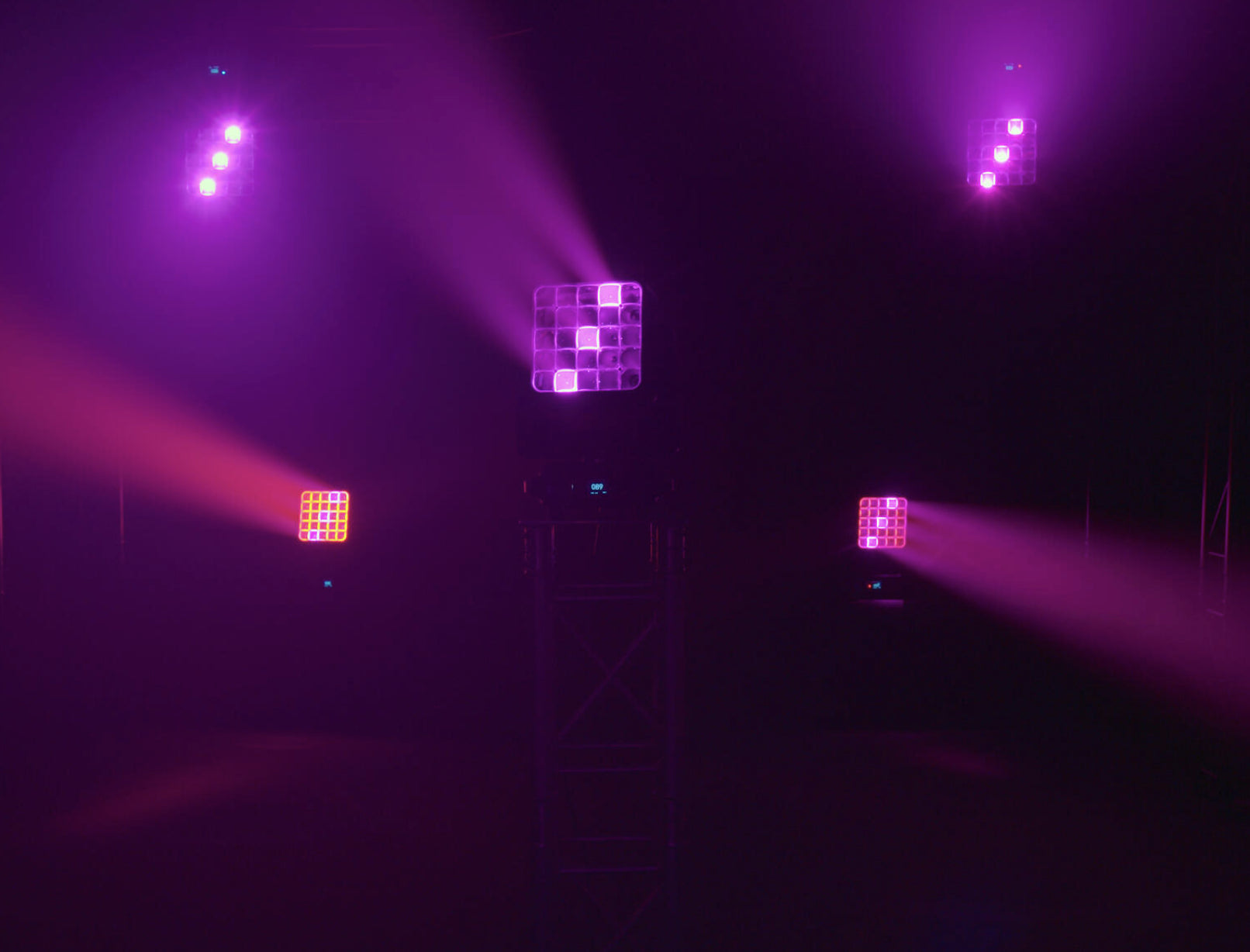 Matrix moving head with RGBW LEDs, pixel control and macros for animations, letters and numbers