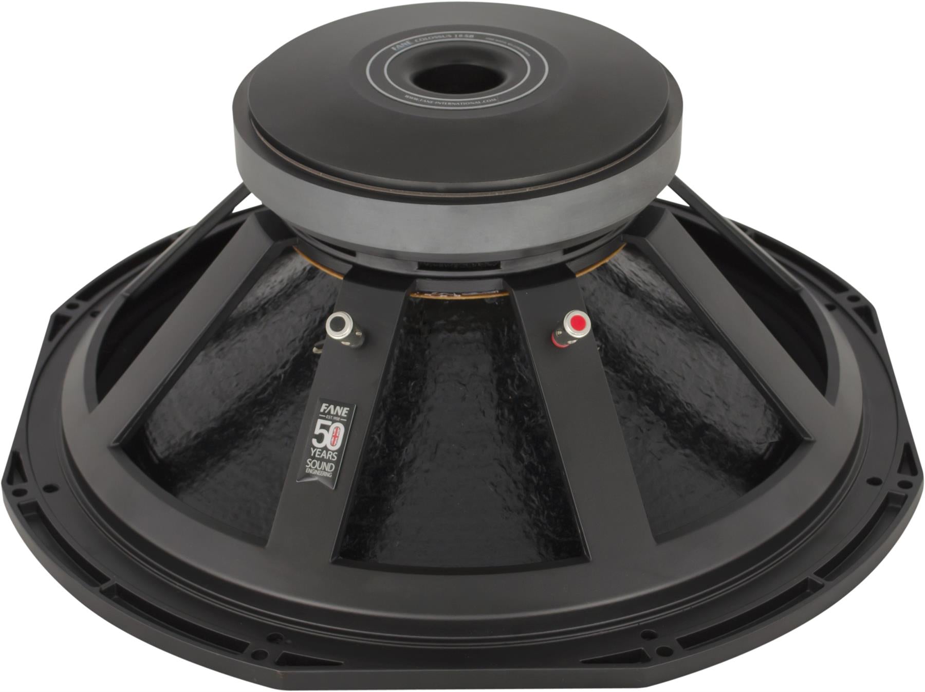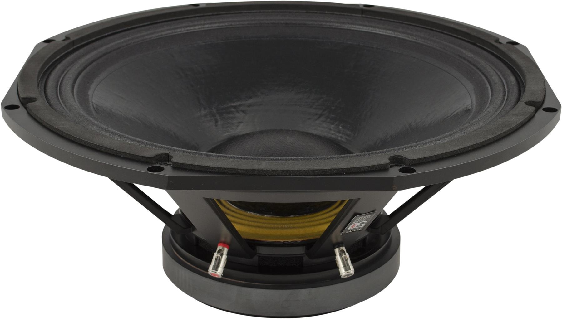 The Colossus 18SB is intended for use as a high output bass driver in multi-way systems. It features a 4 inch sandwich inside and outside windings voice coil, immersed in a symmetric magnetic field yielding increased linearity and lower distortion. This, coupled with a large Xmax of 8.25 mm and laminated silicone suspension, ensures tight, punchy bass at high levels of excursion. The cone membrane, manufactured from polycellulose, is much stronger and more durable than conventional paper pulp alternatives. This allows the driver to combine high sensitivity with the structural integrity required to produce undistorted low frequencies at extreme sound pressure levels. The driver handles 1000 Watts (A.E.S.) continuous and can cope with peaks in excess of 4000 Watts. This is due to advanced thermal management in the form of vented diecast chassis and increased motor system venting. These measures effectively remove heat from the voice coil, resulting in extremely low-power compression. The Colossus 18SB exhibits 100 dB sensitivity and can deliver bass down to 35 Hz (-6 dB) in a 200 Litre ported enclosure.