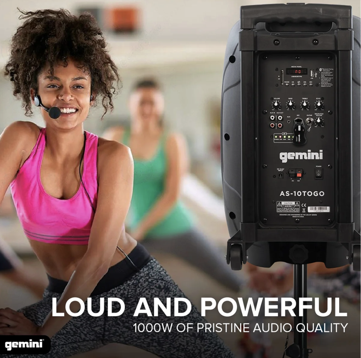 Gemini AS-10TOGO Portable Bluetooth Speaker 10" Battery