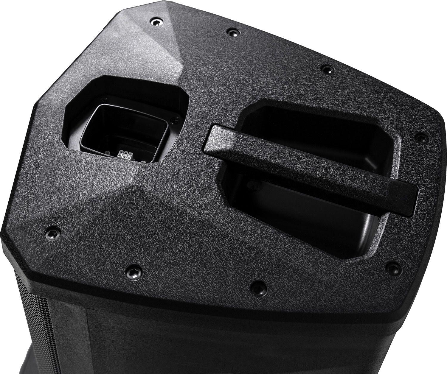 The True Wireless Stereo (TWS) function lets you connect two units for an immersive stereo sound experience, ideal for large set-ups. Its rear panel includes two XLR/Jack combo inputs, an XLR output and a three-channel mixer with individual gain and reverb settings, offering precise control of audio sources. Designed to be easily transported with its ergonomic handles and 17.7 kg weight, this system offers a complete solution for users seeking mobility, performance and versatility.