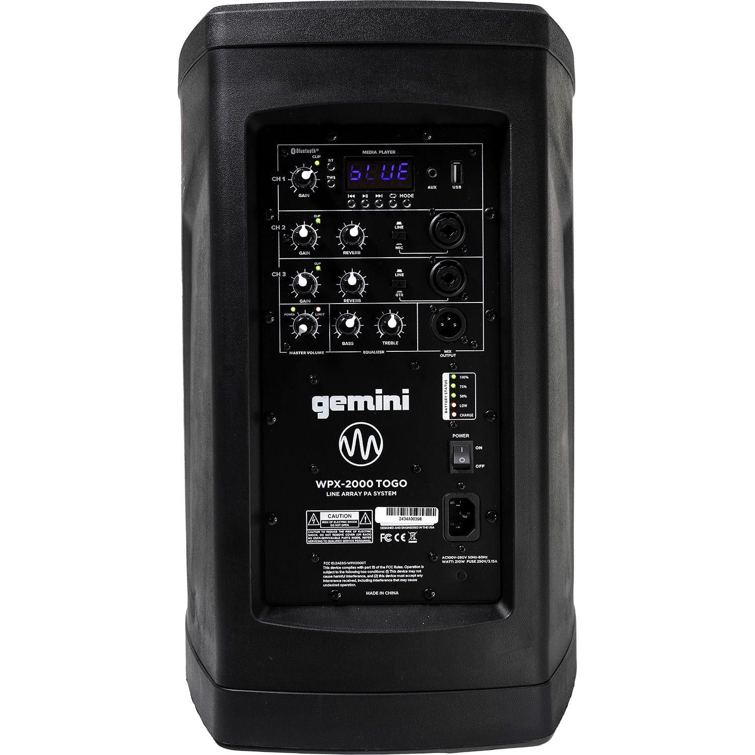 The Gemini WPX-2000TOGO is an all-in-one sound system designed to meet the needs of events requiring a portable, self-contained installation. With its 8-inch subwoofer and six 2.75-inch speakers, it delivers a balanced sound reproduction covering a wide frequency range from 20 Hz to 20 kHz. Its Class D amplification delivers up to 1000 watts of peak power, with 500 watts of continuous power, guaranteeing a sound performance suitable for a variety of applications, from impromptu concerts to open-air conferences.