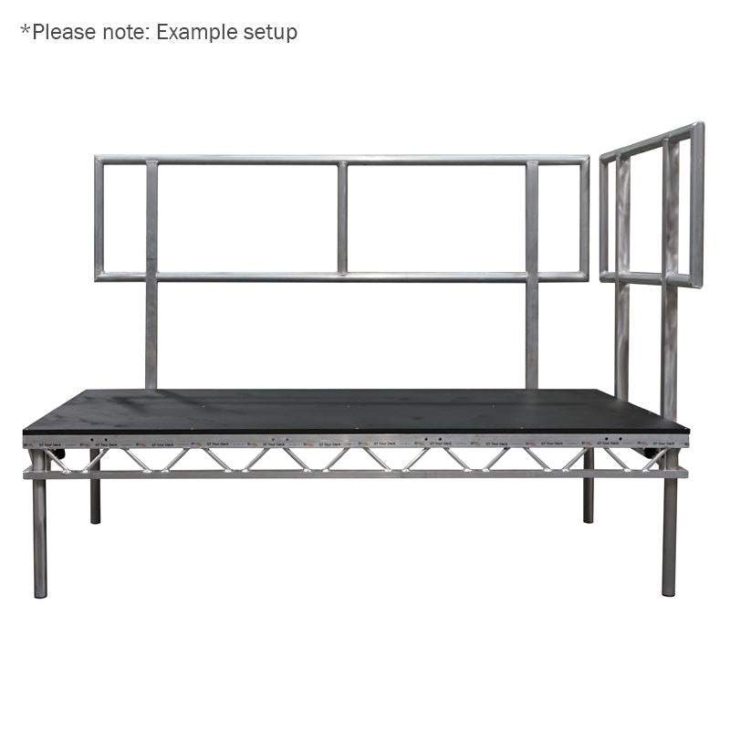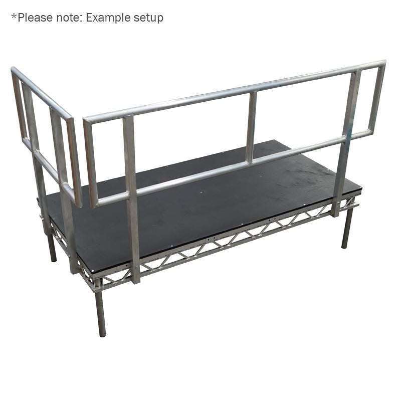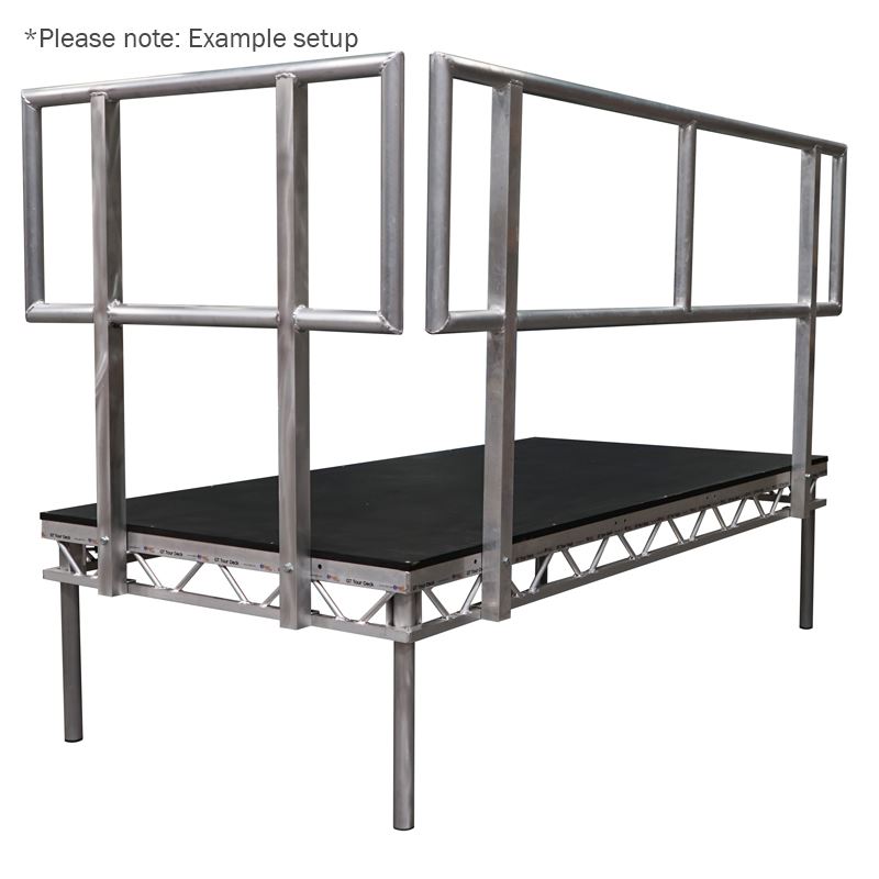 This aluminium handrail has been designed to bolt directly to the side of the Global Truss Tour Deck platforms. The rugged, welded aluminium design complements the welded frame of tour deck and is cross compatible with other similar stage deck systems. The standard, open frame design is ideal for general stage applications where there is no public access.