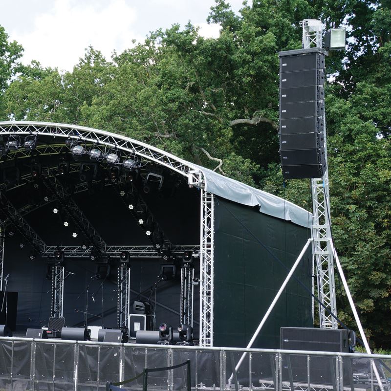 Ideal for line array loudspeaker systems up to 500kg, the LA 500 ground support system from Global Truss utilises F34PL quad truss.