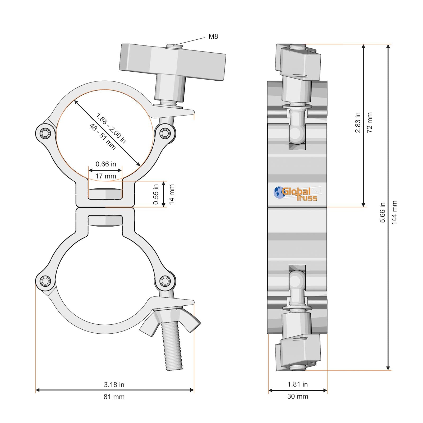 Global Truss Pro Narrow Swivel Coupler Clamp (ST812D-IN)