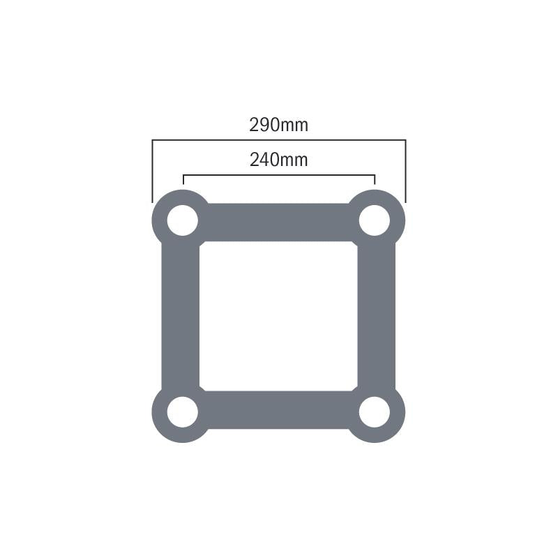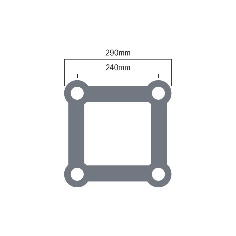 The Global Truss F34 feature TUV Certified aluminium welding and 2mm wall thickness for a superb load handling capacity. A full range of lengths, baseplates, corners, connectors and couplers are available, making them ideal for fixed installation, shop fittings and rental applications.