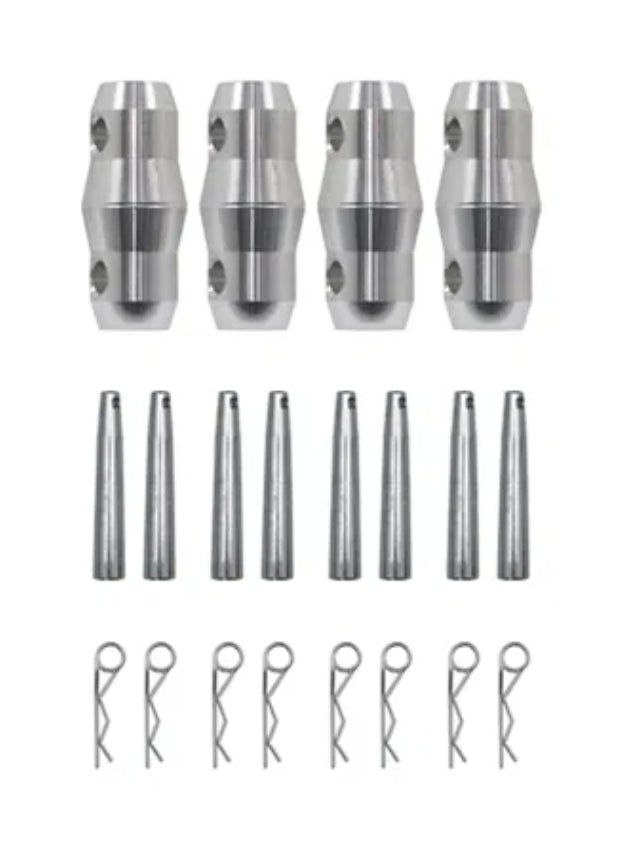 Supplied with 4 x Conicals, 8 x Pins and 8 x R-Clips