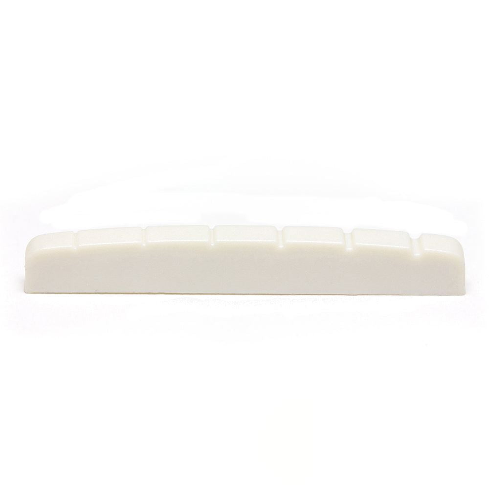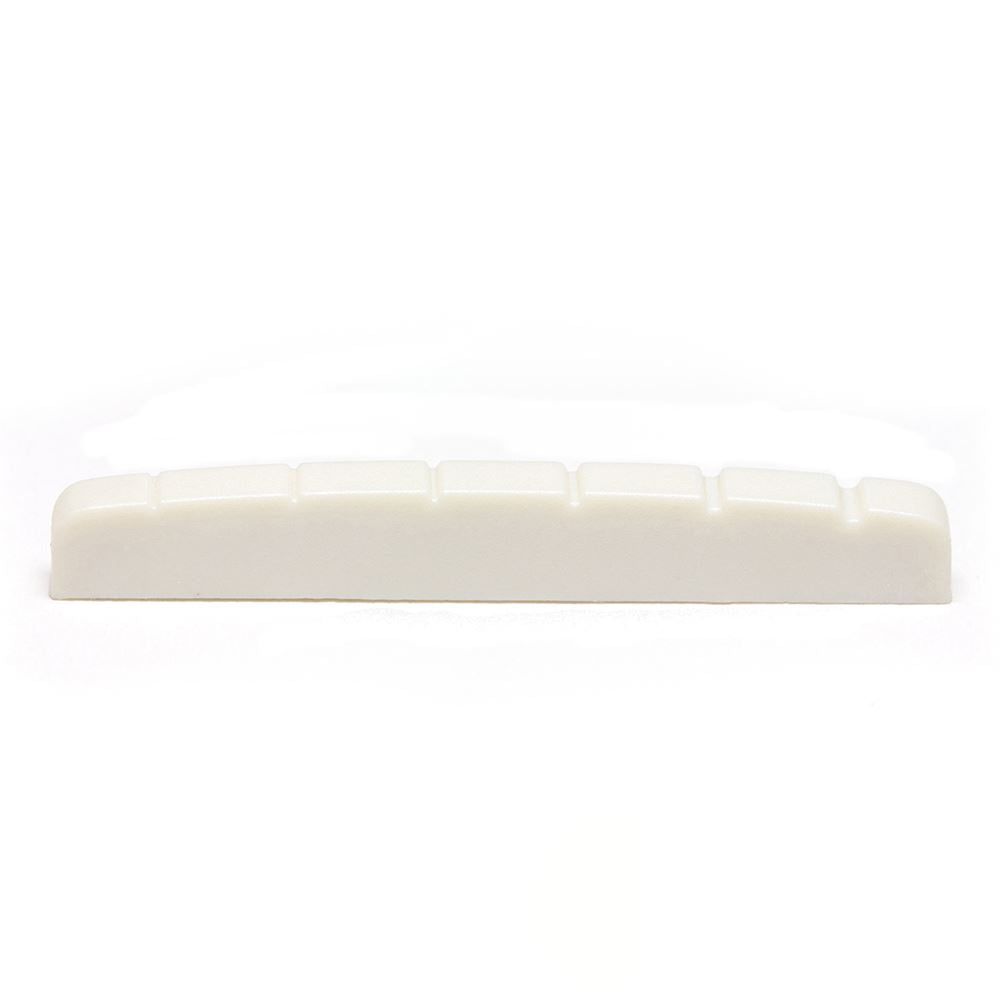 NuBone is a derivative of Graph Tech's highly resonant TUSQ material, manufactured to very close tolerances under high heat and pressure. We use specific ratios that contribute to NuBone's hardness, workability, appearance, and most importantly, guitar performance.Odorless when sanded, it is strong, outlasting and outperforming plastic.NuBone is the answer!