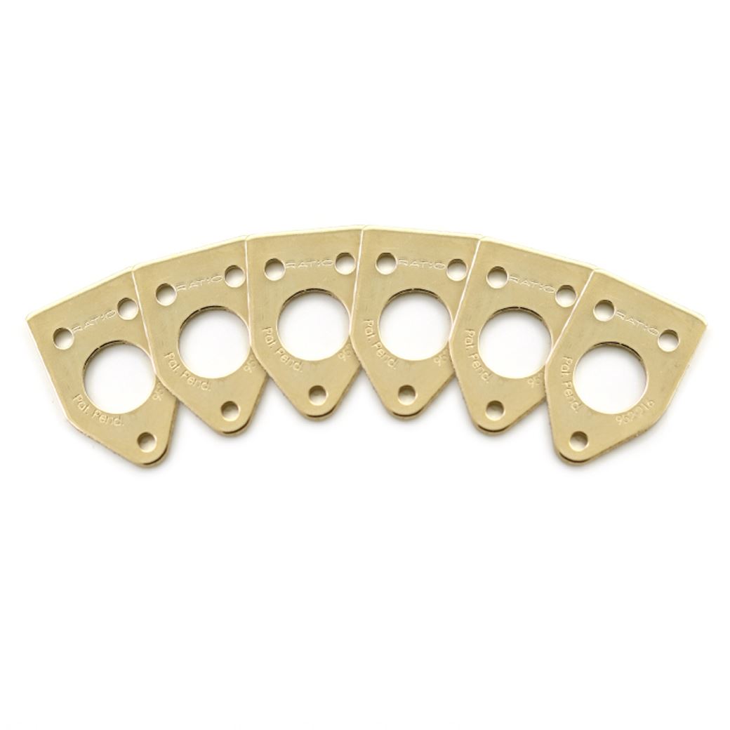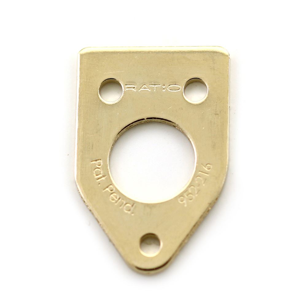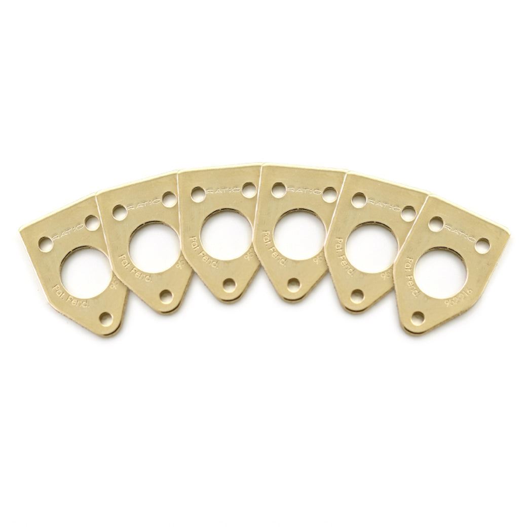 Set of Ratio InvisoMatch Premium Installation Plates, designed for easy installation of Ratio Tuned Machine Heads. It has 90 degree screw holes and is finished in gold.